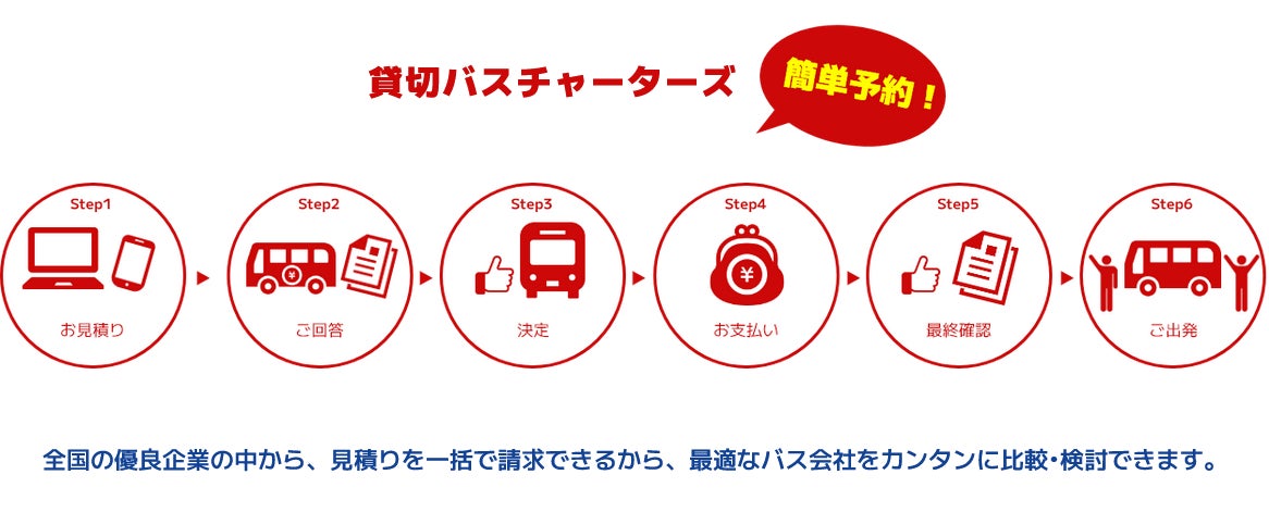 幹事様必見!!全国の優良バス会社の中から、見積りを一括で請求できるから、最適なバス会社をカンタンに比較・検討できます。