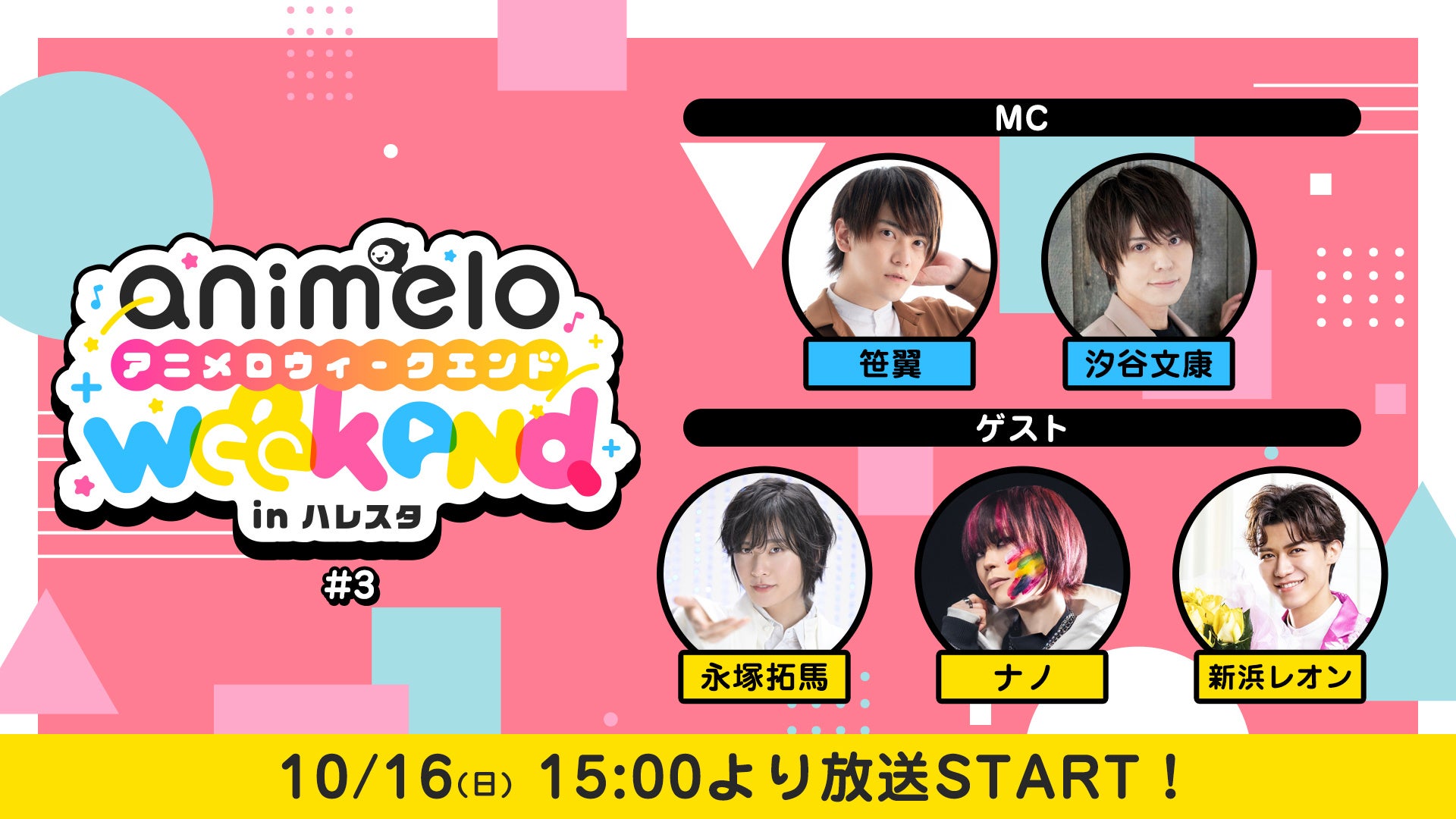ニコニコ生放送にて、レギュラー放送中のアニソン音楽番組『animelo weekend in ハレスタ』。10月放送回のゲストとして、永塚拓馬さん、ナノさん、新浜レオンさんの生出演が決定しました。