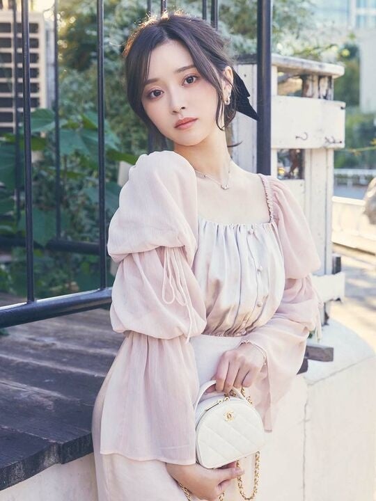 fiolily/ Volume Sleeve Gather Satin Dress