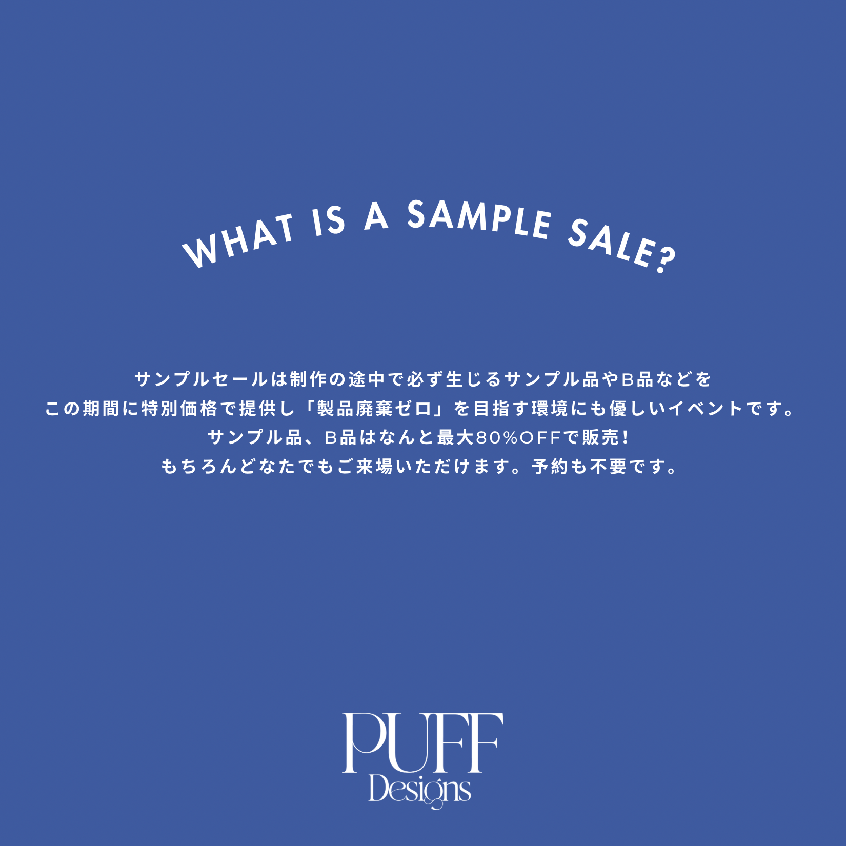 【PUFF Designs】3ブランド合同の最大80%OFFサンプルセールを2024年6月29日(土)、30日(日)に開催決定