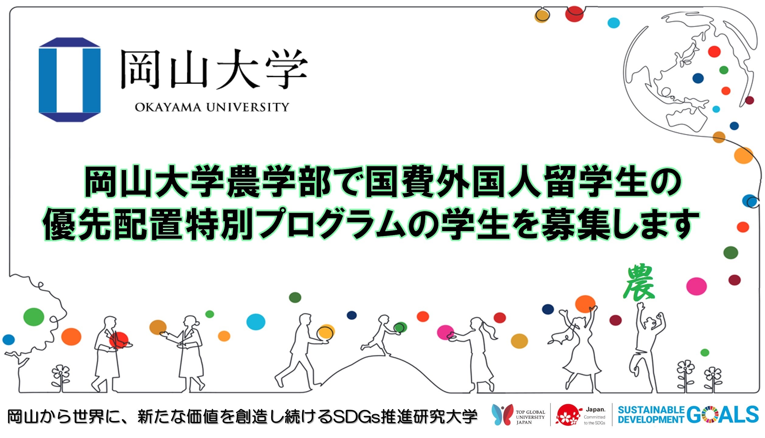 【岡山大学】岡山大学農学部で国費外国人留学生の優先配置特別プログラムの学生を募集します