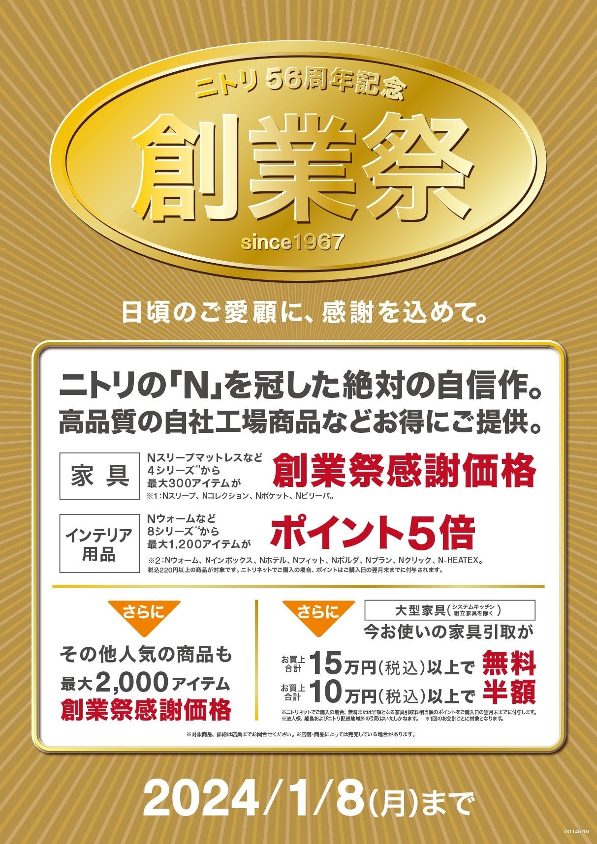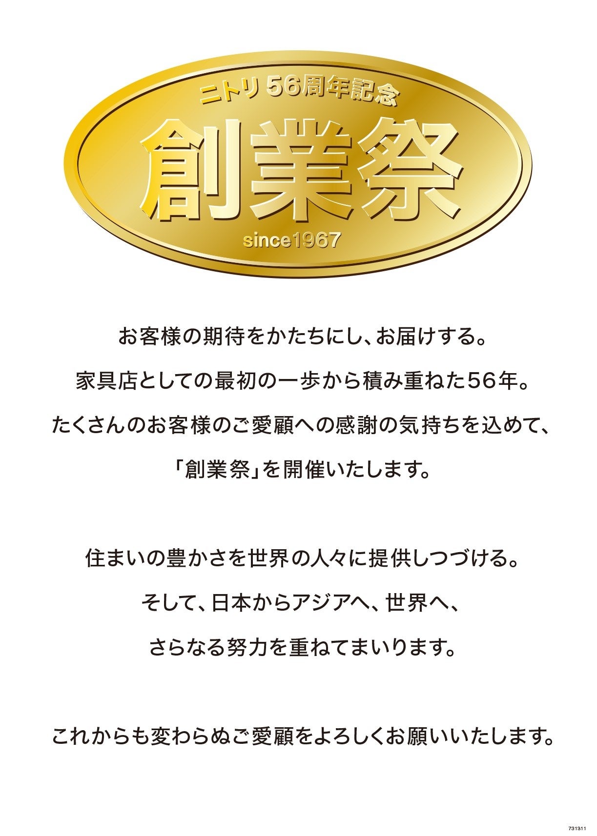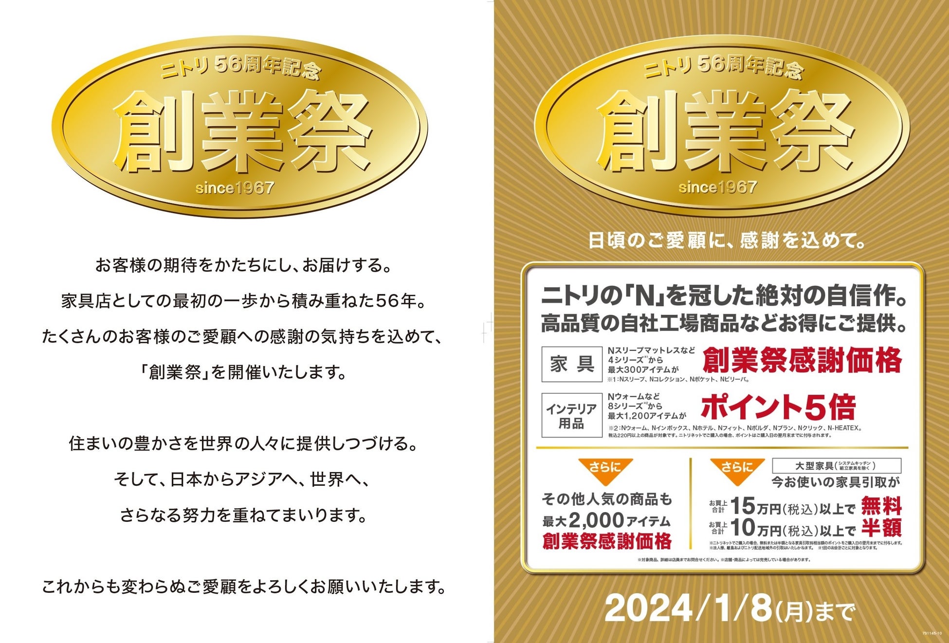 ぜひ、お得なニトリ創業56周年記念創業祭をお見逃しなく。