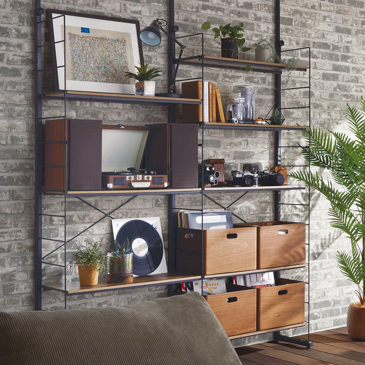 収納を平面から縦(壁)に。天井に突っ張るから壁も傷つかない。インテリアも飾っておしゃれに、見せる収納としても大人気。