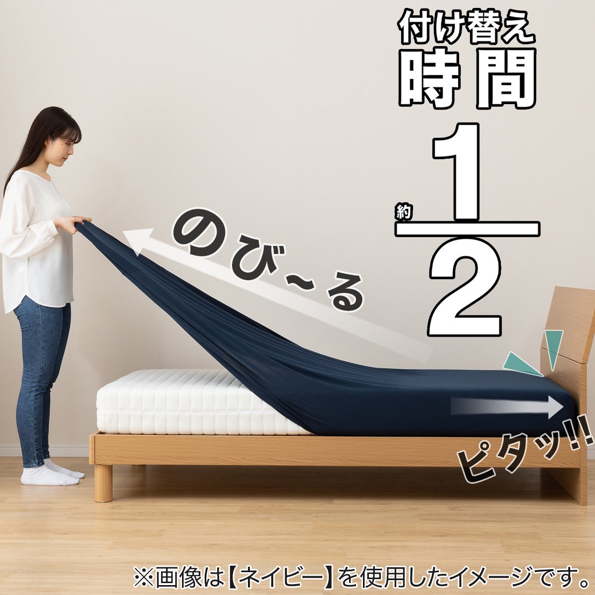 ラクにピタッと装着。朝起きてもズレることなく、ピタッとベッドにフィットする、お客様のお困りごとを解決するカバーです。