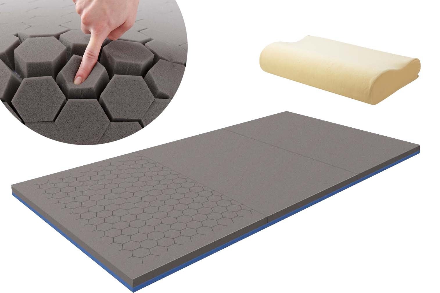 ・マットレスは頭・肩部分に体の凸凹に合わせてフィットするハニカムピラー(六角柱)構造を採用