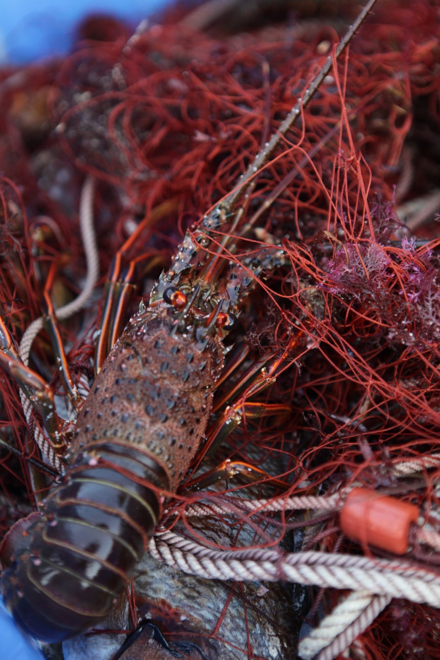 例年9月中旬に解禁を迎える南伊豆の伊勢海老漁 (刺網・仕掛け網漁)。岩礁が多く伊勢海老の生息に適した南伊豆町沿岸では、伝統的に月の満ち欠けにあわせた漁が行われます。満月など、月が明るいと夜行性の伊勢海老の動きが鈍るため、満月の前後5日間は休漁期間。伊勢海老の活動が活発になるのは月が隠れる20日間であるため、その間、伊勢海老漁が行われるというサイクルです。