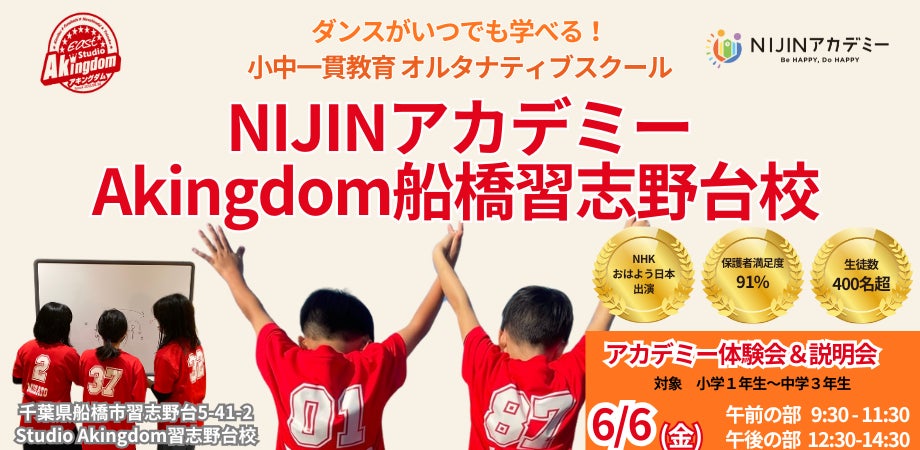 株式会社NIJIN(本社:東京都江東区 代表取締役:星野達郎)が運営する不登校オルタナティブスクール「NIJINアカデミーAkingdom船橋習志野台校」(所在地:千葉県船橋市)にて、この度ダンスに特化した
