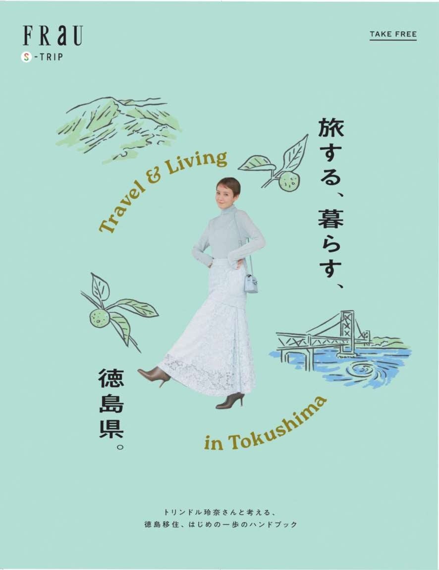 このハンドブックでは、人気のタレント・俳優の「トリンドル玲奈」氏を起用し、女性ファッション誌のようなデザインで、徳島の美しい自然や豊かな文化、そして地域の温かい人々との出会いを通じて「旅する、暮らす」という新しいライフスタイルの提案を行っています。