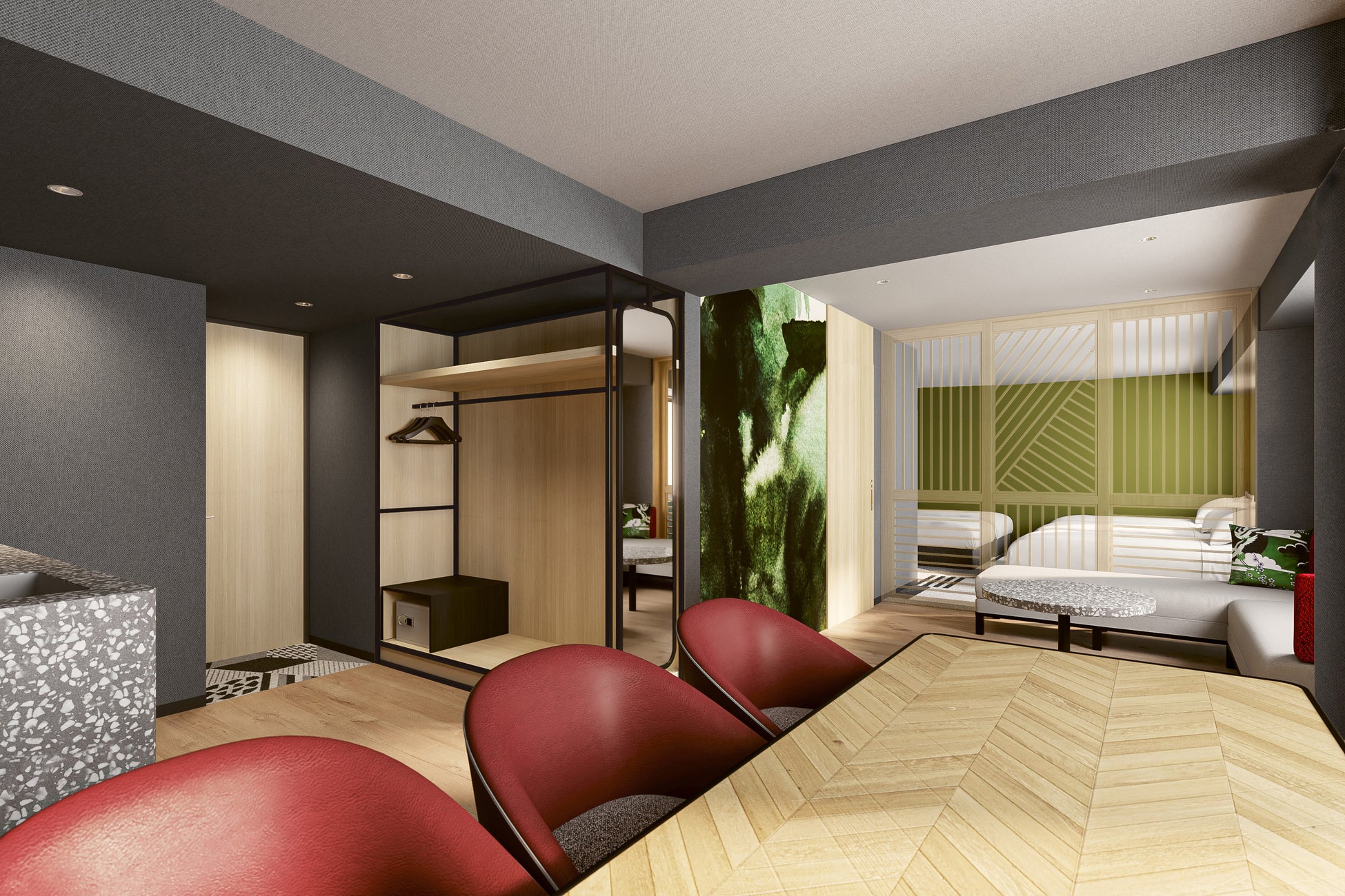 ゲスト同士がコミュニケーションを取りながらアクティブに自由に過ごす場所である「Hang Out」では、一期一会の出会いを大切にし、語り合い、地域、文化、趣味、それぞれ違うもの同士が集まれます。みんなで遊べるボードゲームやモニターが設置されるほか、ゲスト同士が一緒に参加できるイベントを定期的に開催予定。新しい化学反応が生まれ、これからの物語がはじまる場所になります。