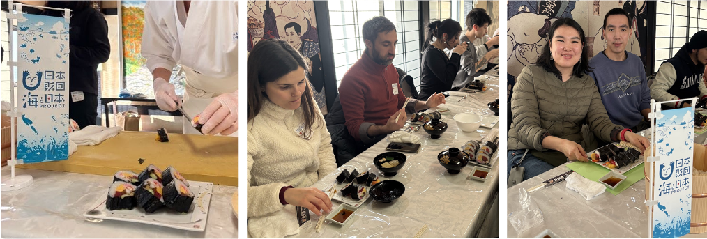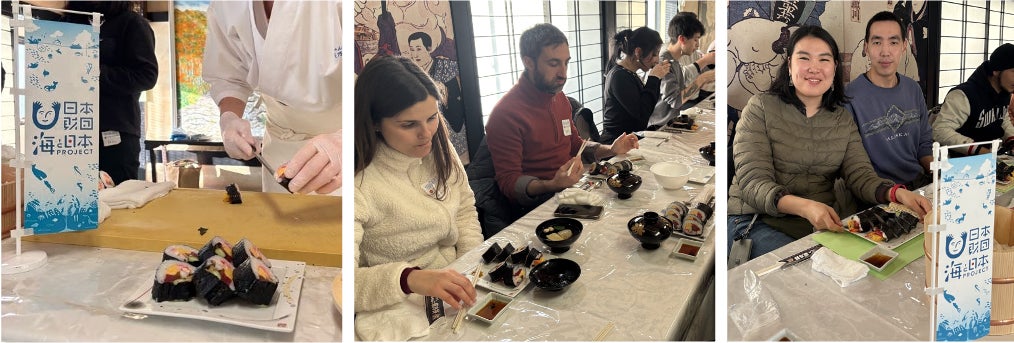 本イベントでは、地域の特産品である海苔を自ら作る海苔すき体験を行い、海苔や季節の魚を使った手巻き寿司に仕上げます。自らの手で海苔すきや手巻き寿司作りを行い食すことで、県内に住む外国人が地域の海産物や食文化に関心を持つことを目指しています。また、地元漁師や研究者による「海の学び講座」も実施しました。気候変動による魚種の変化や藻場の減少など、東松島の海が直面する課題について、実際の現場の声を交えて学ぶことができます。単なる体験にとどまらず、未来の海を守るための気づきを共有できるプログラムです。