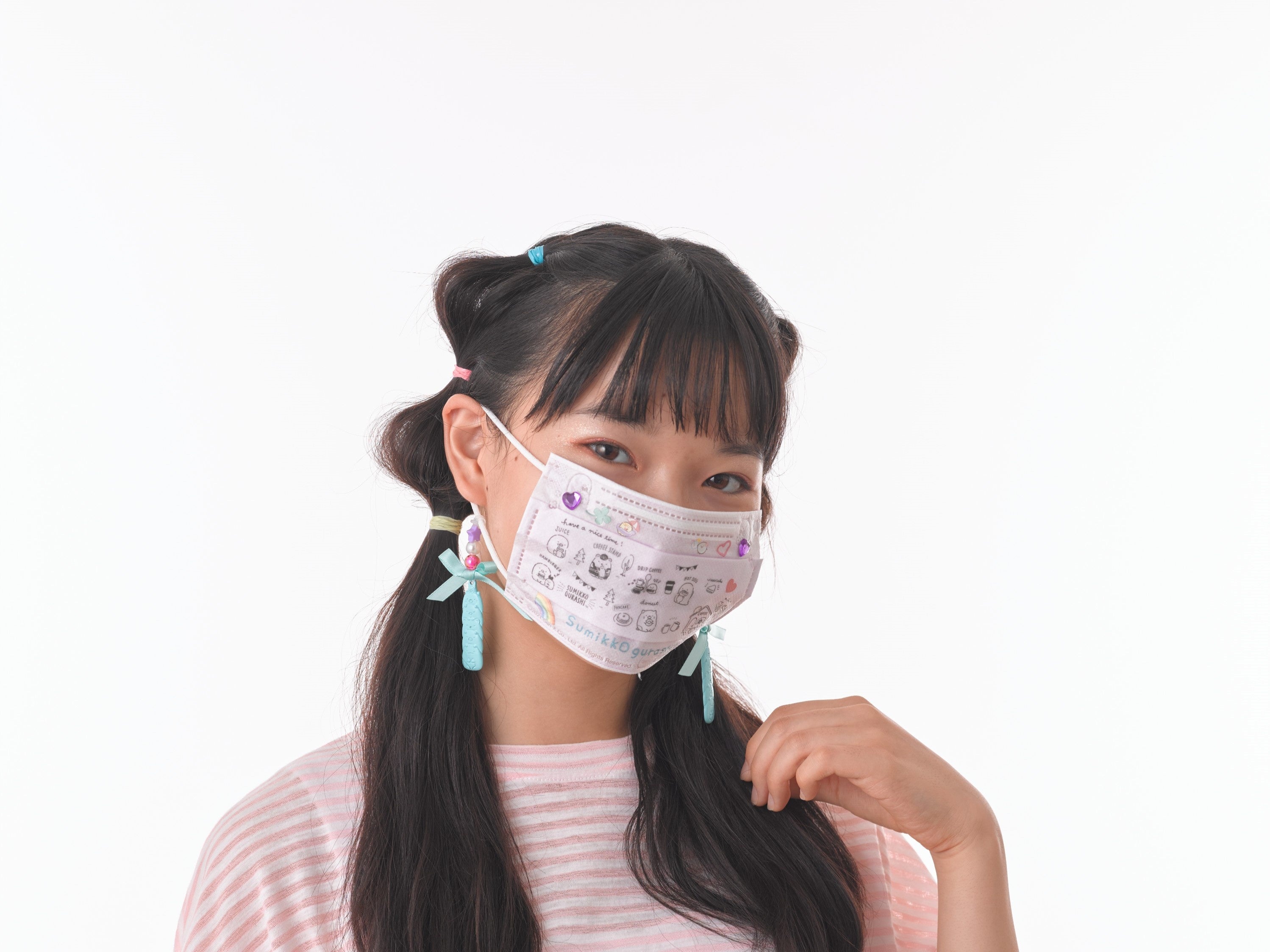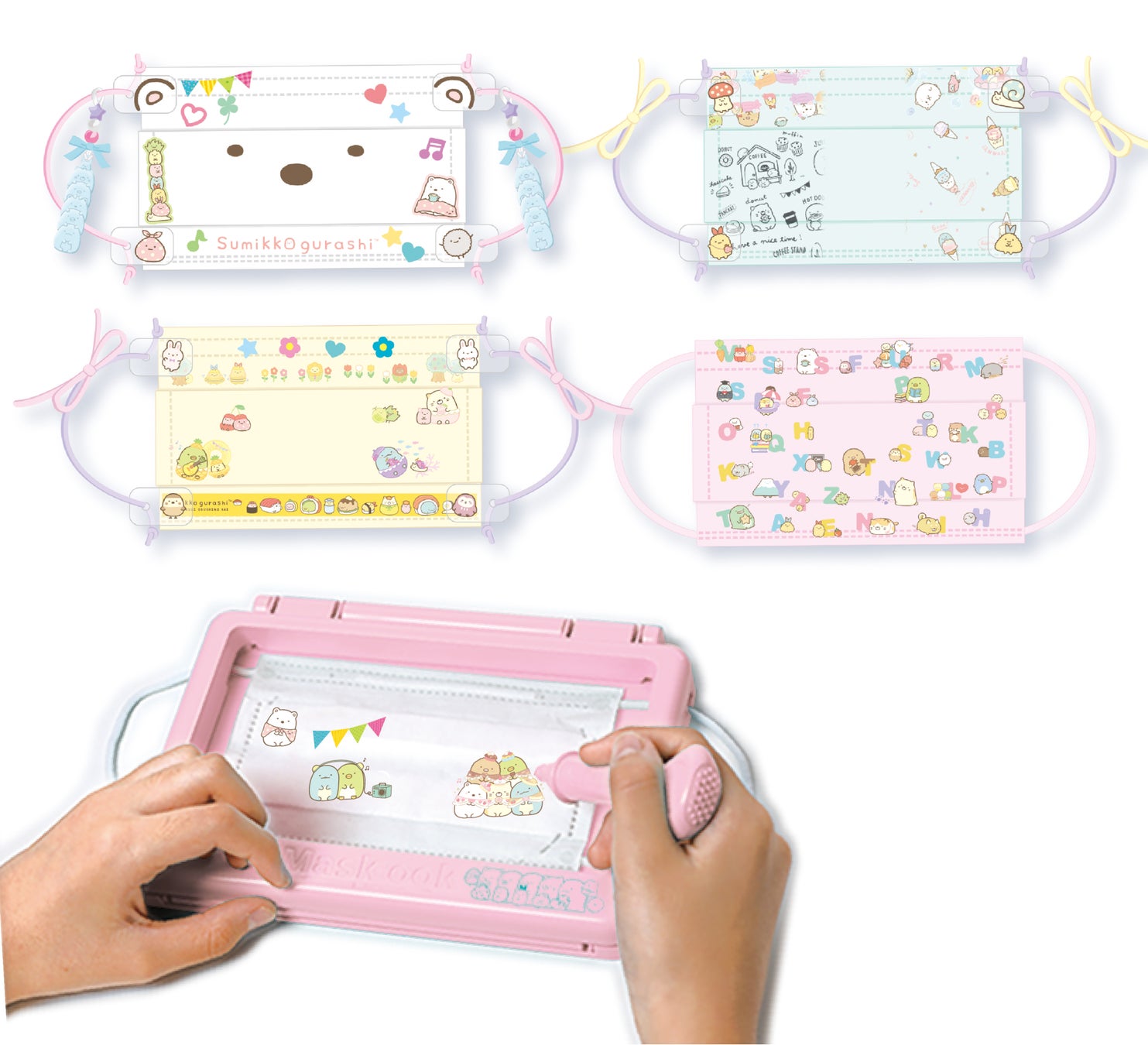 マスクは、感染防止の目的だけではなくファッションアイテムとしてスタイリングを楽しむ人も増えてきています。『マスクにプリント!マスクックすみっコぐらしDX』では、大好きなキャラクターをマスクのデコレーションに加え、耳紐の色替えなど自由にファッションをお楽しみいただけます。忙しい朝でも最短10秒で簡単に盛れるデコレーションマスクが作れるキットで、毎日のファッションをお楽しみいただけます。