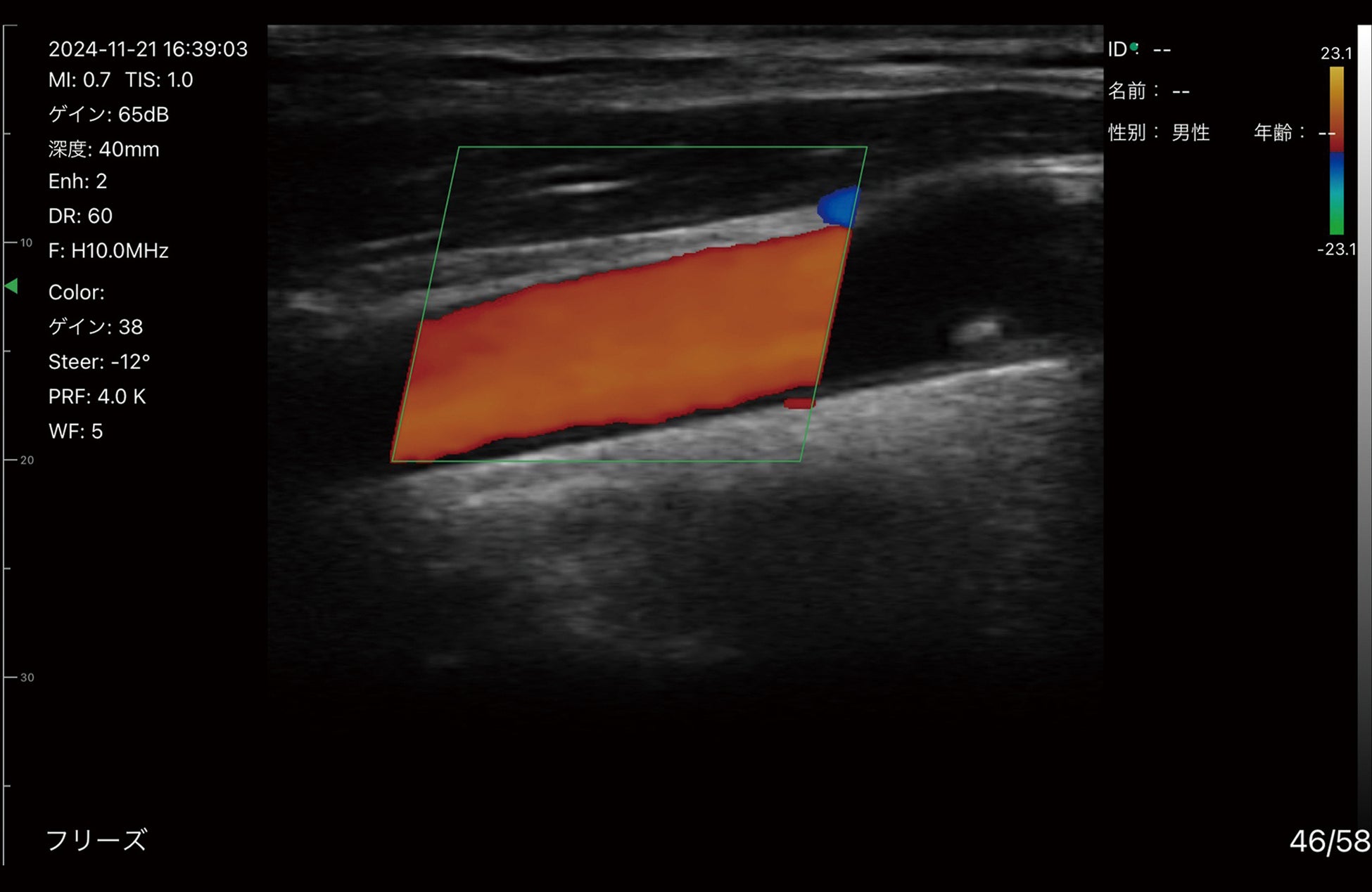 コンベックスとリニアプローブを一体化したデュアルプローブと、血流を視覚的に表示するドプラ機能の搭載により、1台で幅広い領域/部位へ使用可能。