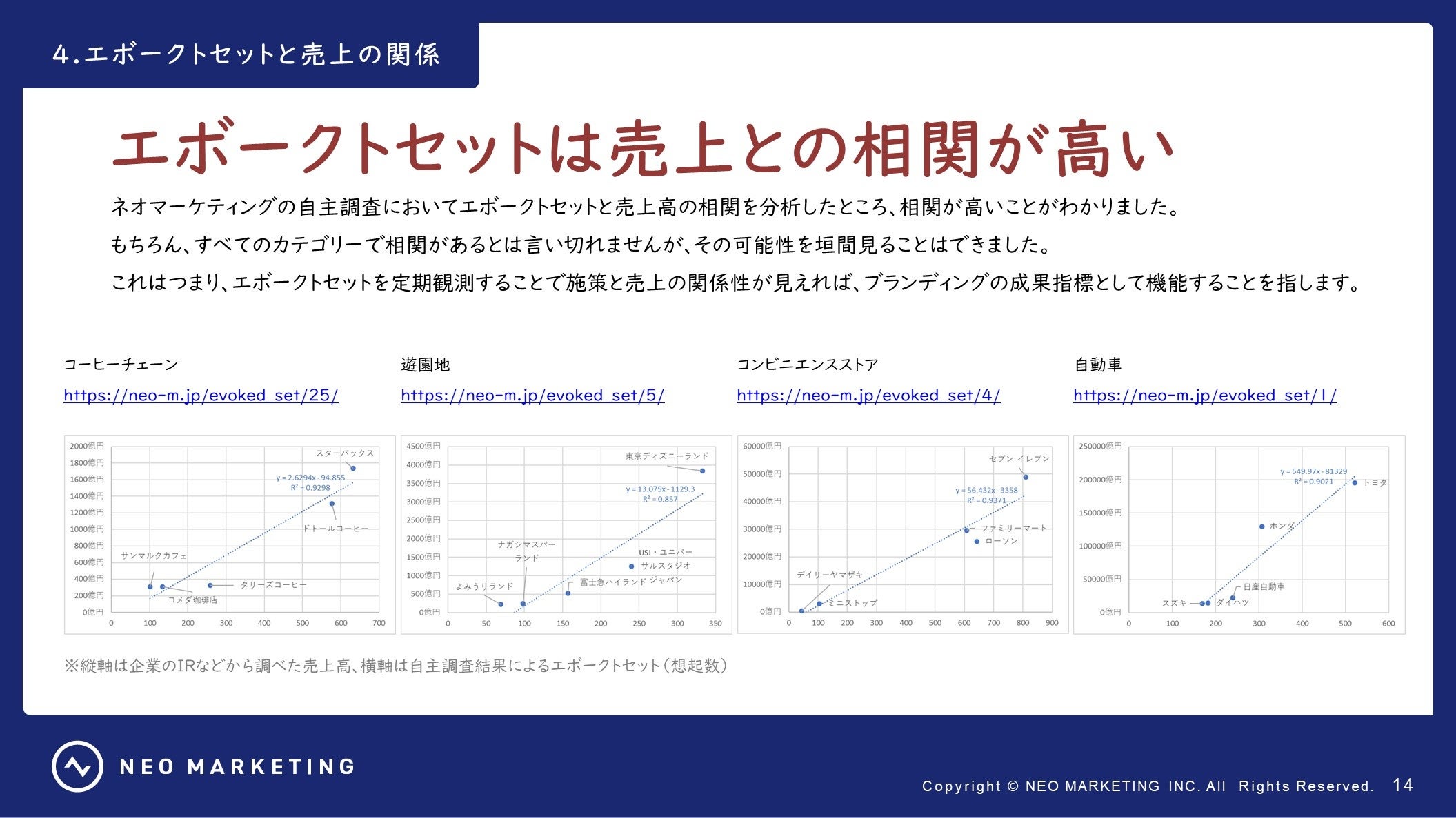 このホワイトペーパーでは、ブランドや製品が消費者にとって最初に思い浮かぶ「エボークトセット」に入ることの重要性を説明しています。エボークトセットとは、購入時に考慮されるブランドの集合体であり、これが売上と強い相関を持つことを示しています。