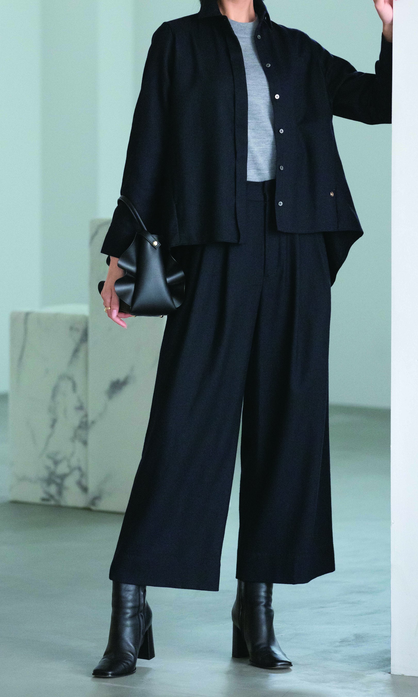 ピンタックやサイズ感など、美脚見えを意識したワイドパンツを紹介します。