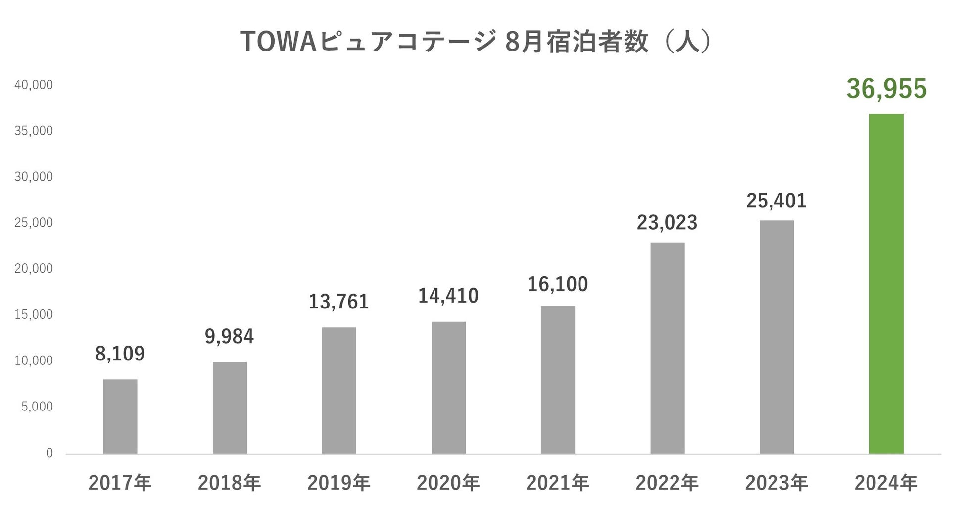 これらの取り組みにより、「TOWAピュアコテージ」における2024年8月の宿泊者数は開業以来の最高記録を更新しました。今後も更なるサービス拡充、新たな取り組みを進め、お客様にお喜びいただける施設づくりを進めてまいります。