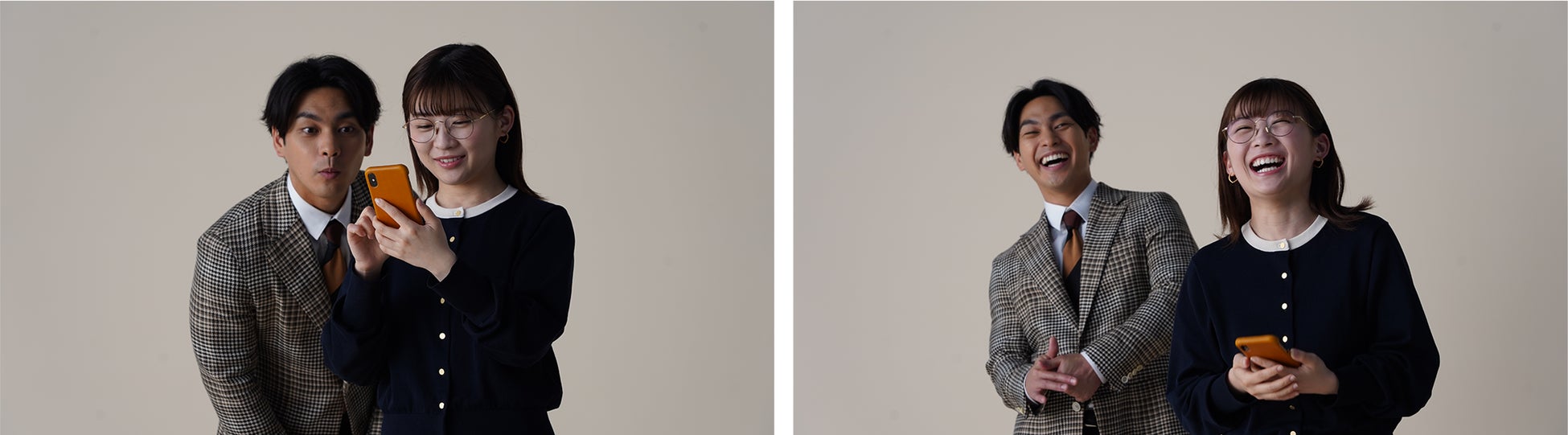 CMラストシーンの撮影では、柳楽さんと伊藤さんがアドリブを楽しみつつ、複数パターンの演出に挑みました。スマホでSmartNewsをチェックする伊藤さんとそれを覗き込む柳楽さん。「それ何?」と聞く柳楽さんに「いやいや」とはぐらかす伊藤さん。それに対し「いやいやいや」と柳楽さんが言うと、「いやいやいやいや」と返す伊藤さん。このシーンでものっかりあいが顕在!周囲からも笑いが巻き起こっていました。本CMで初共演を果たしたお二人ですが、さまざまなシーンの撮影を共にすることで、最後にはすっかり打ち解けられていました。