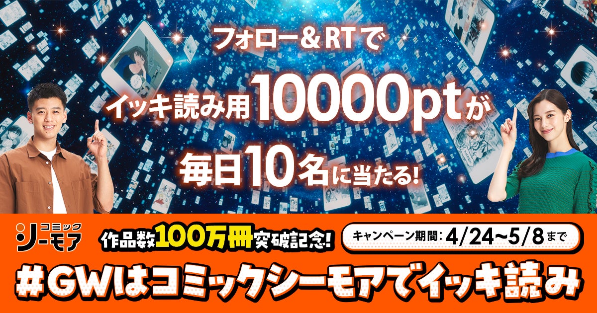 コミックシーモアの取扱い作品数100万冊突破記念! 「#GWはコミックシーモアでイッキ読み」キャンペーンを開催 毎日抽選で総額150万シーモアポイントが当たるチャンス!