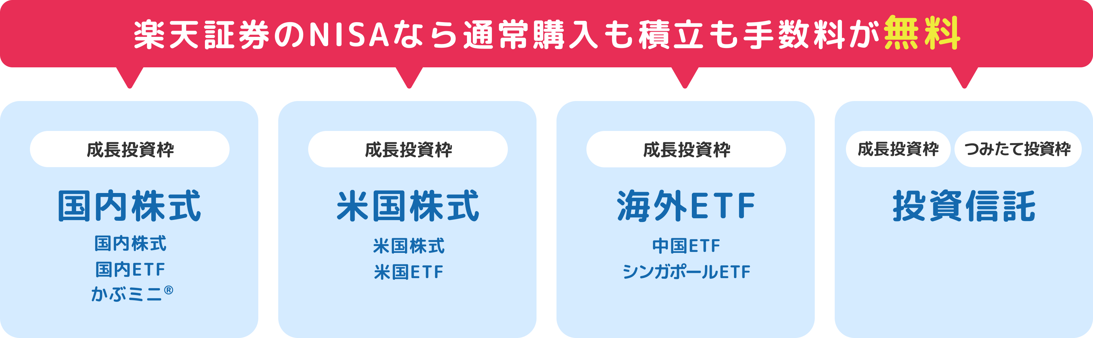 - つみたて投資枠・成長投資枠、どちらの取引も無料 -
