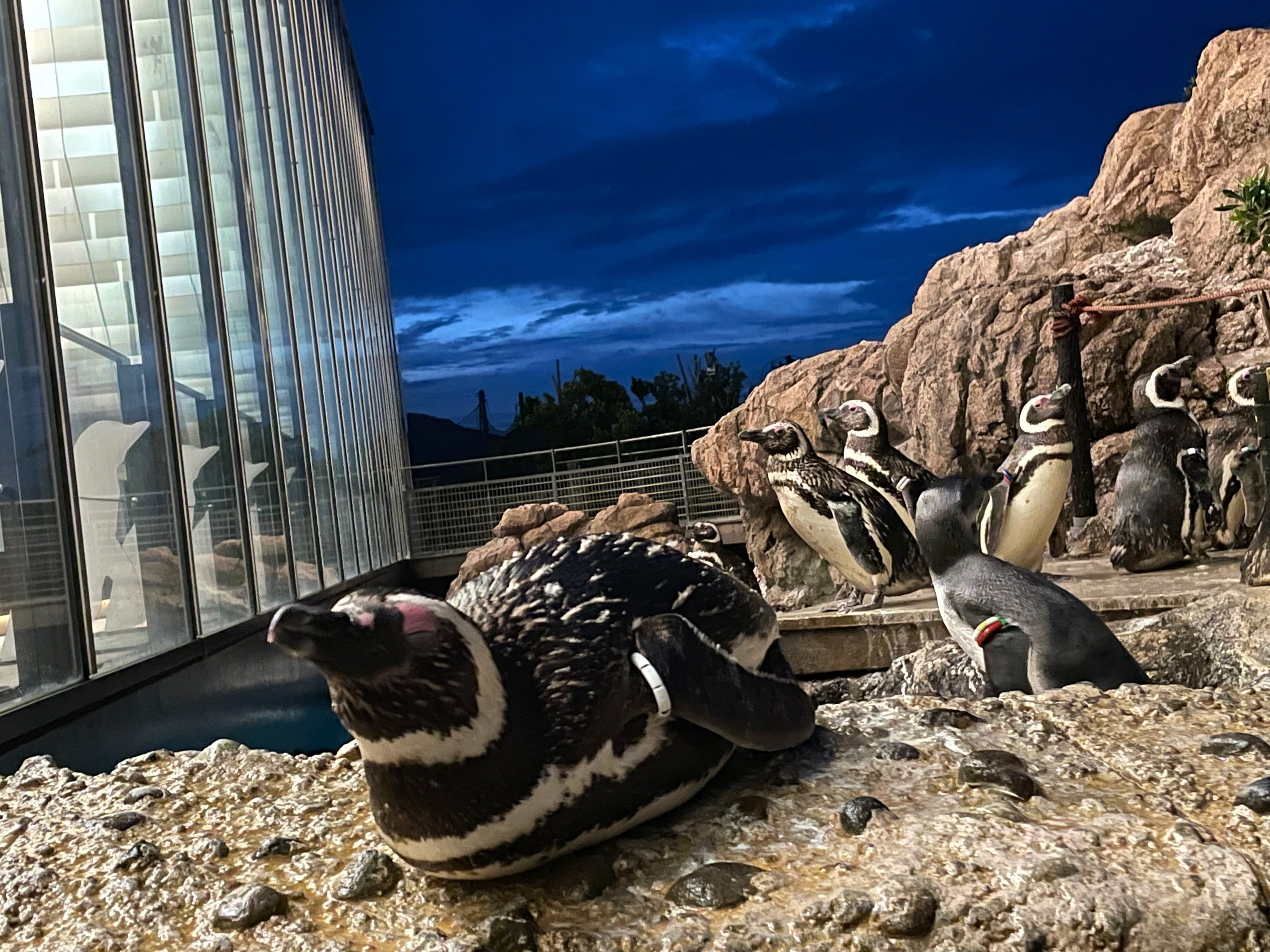 普段は見ることができない夜の生きものたちの姿を観察できることも、「大人のおひとりさま水族館」の醍醐味のひとつです。日中元気にプールを泳ぎ回っているペンギンたちも、夜はみんな陸に上がってゆっくり休みます。そんな、生きものたちの新たな魅力を発見できます。