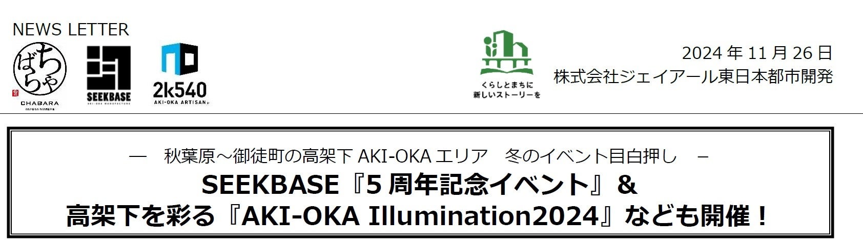 SEEKBASE『5周年記念イベント』&高架下を彩る『AKI-OKA Illumination2024』なども開催!