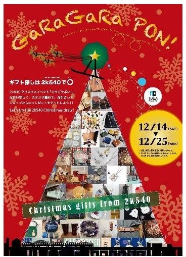 今年も2k540クリスマスの目玉イベント『ガラガラポン!』を開催。2k540のショップでお買い物をして、スタンプを集めると、2k540こだわりの豪華商品が当たる抽選会にご参加いただけます。