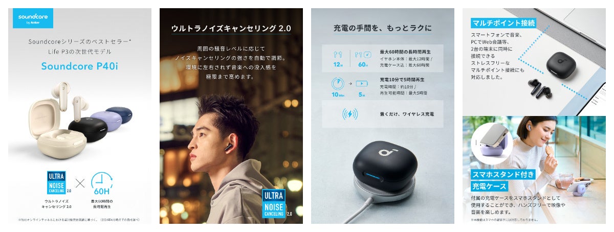 【Soundcore】日常使いに最適、高機能かつカラーも豊富!完全ワイヤレスイヤホン「Soundcore P40i」を販売開始