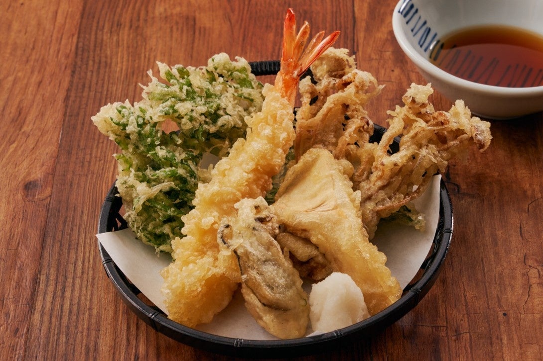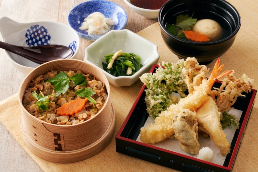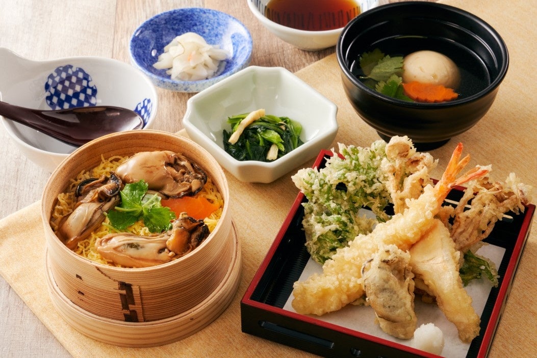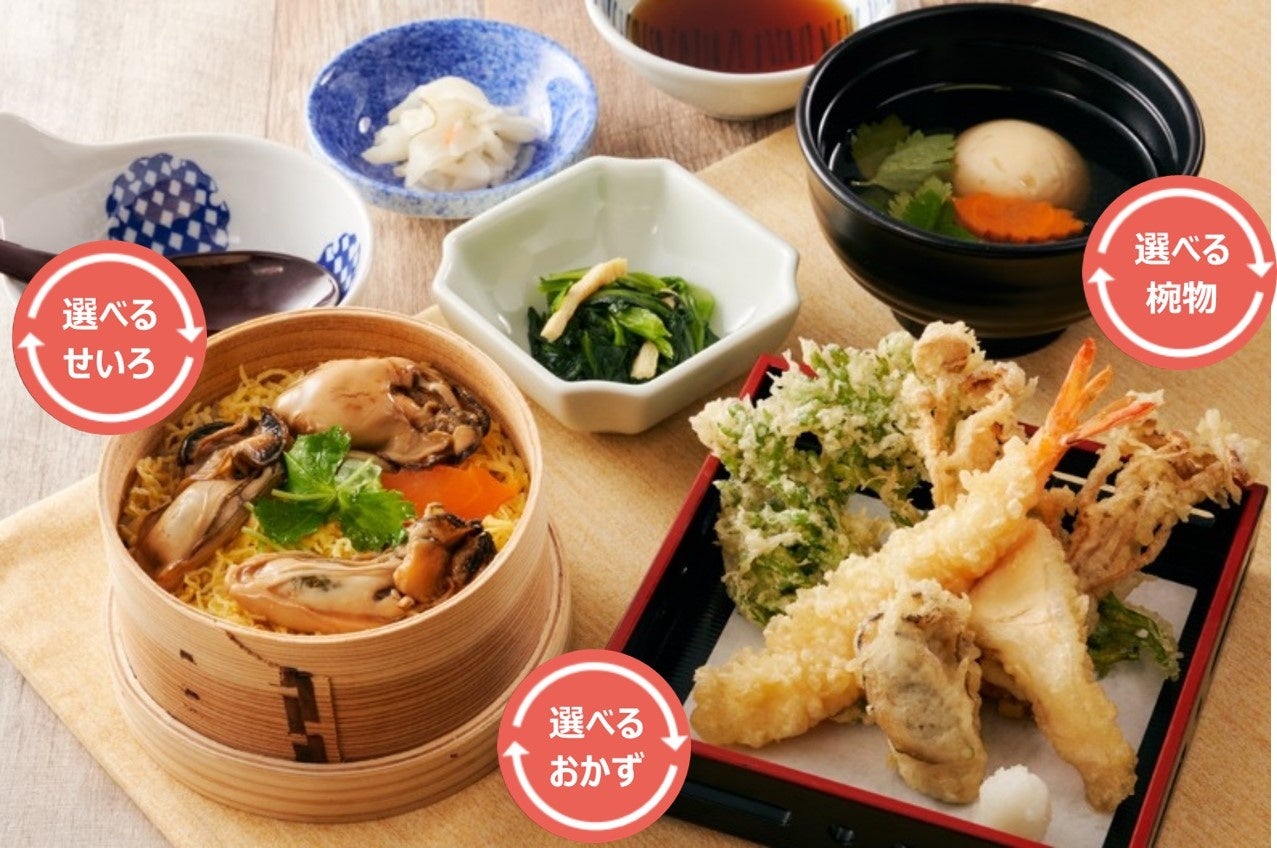 ※画像は「牡蠣せいろ御膳」(季節の天ぷら・海老しんじょうお吸い物)
