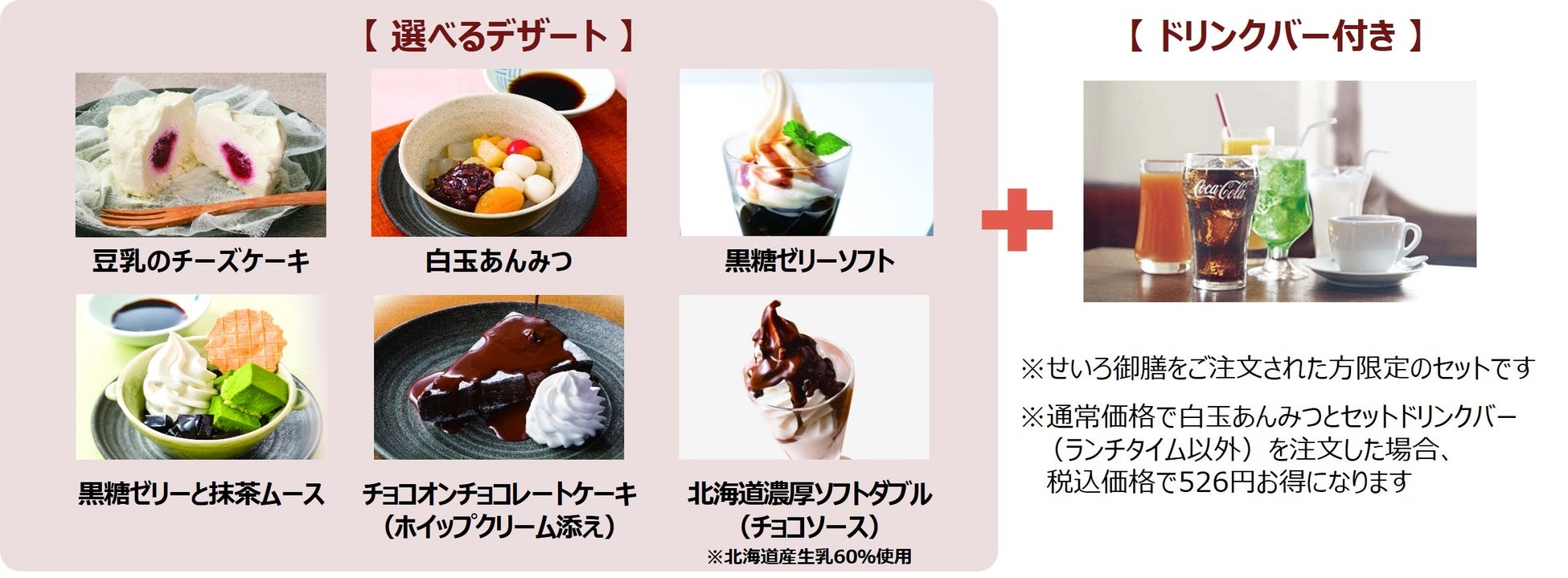 対象メニューに【+税込330円】でお得な「デザート&ドリンクバーセット」