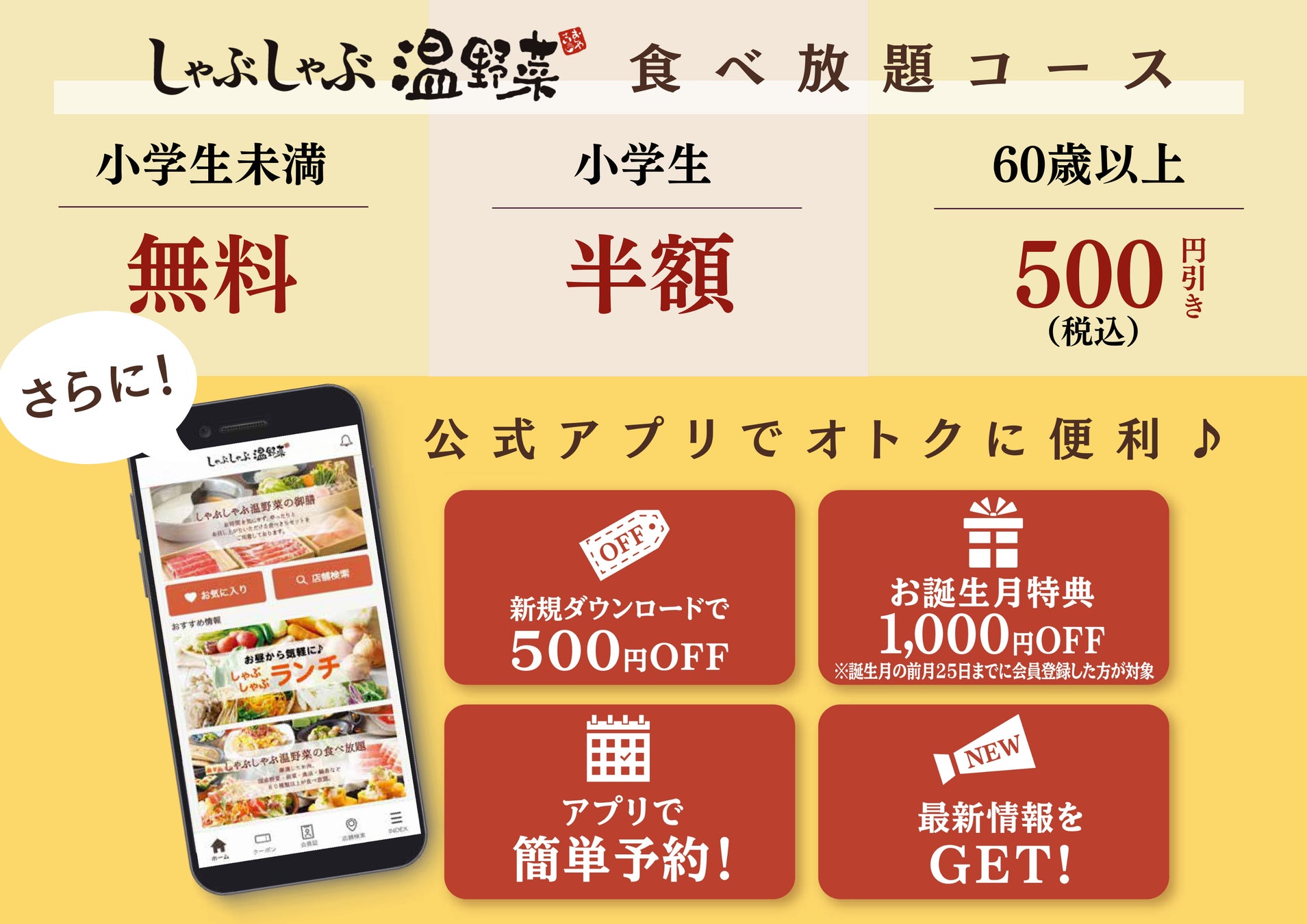 ※一部店舗や販売時期によって内容が異なる場合がございます。詳しくは「しゃぶしゃぶ温野菜 公式ホームページ」をご覧ください。