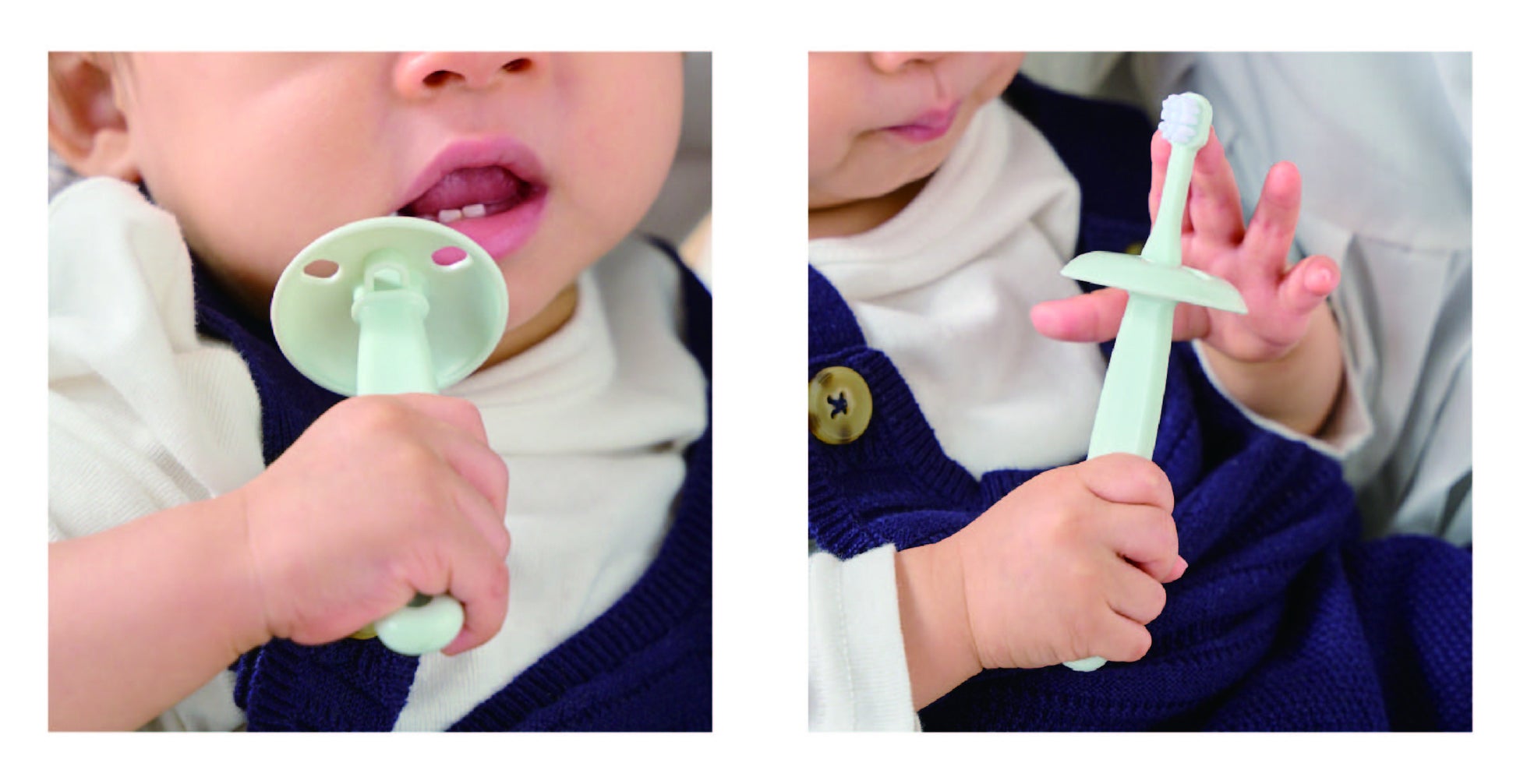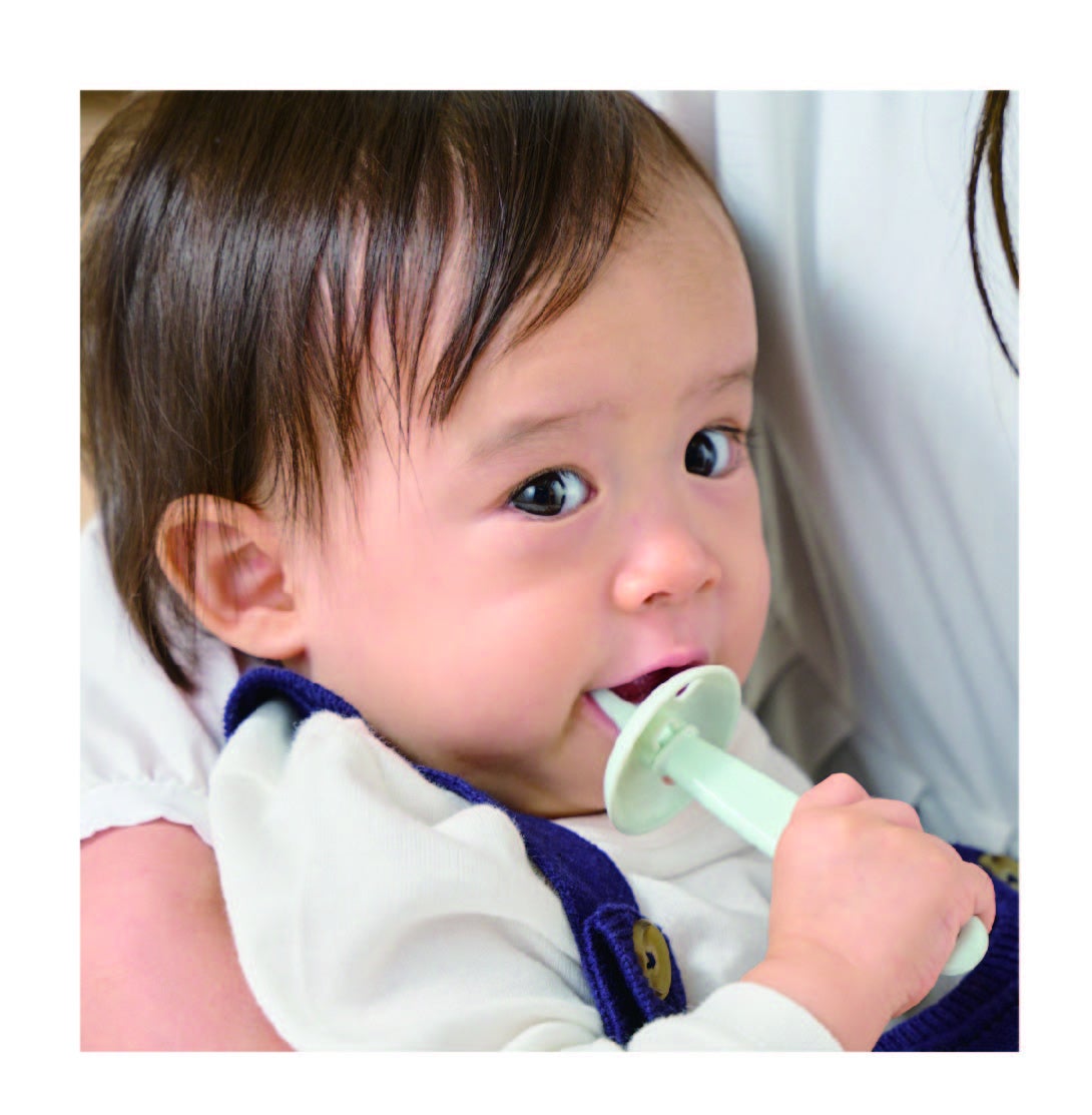 初めて歯ブラシを持つ赤ちゃんでも握りやすい形にしました。