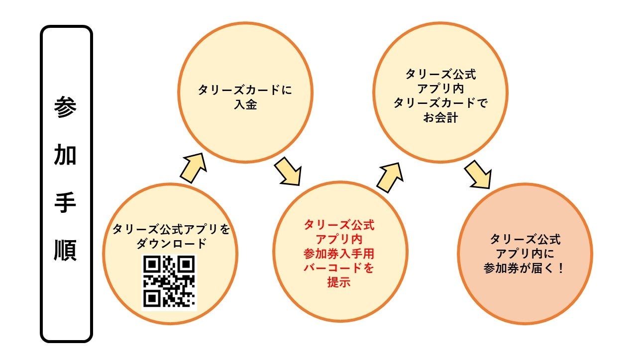 全国のタリーズコーヒー店舗(タリーズカードが使用できない一部店舗を除く)で「タリーズ公式アプリ」内の参加券入手用バーコードを商品ご注文前に従業員(フェロー)に提示の上、「タリーズ公式アプリ」登録のタリーズカードで1会計700円以上(税込)お買い上げいただくと48時間以内にタリーズ公式アプリ内に参加券(プロモーションコード)が届きます。