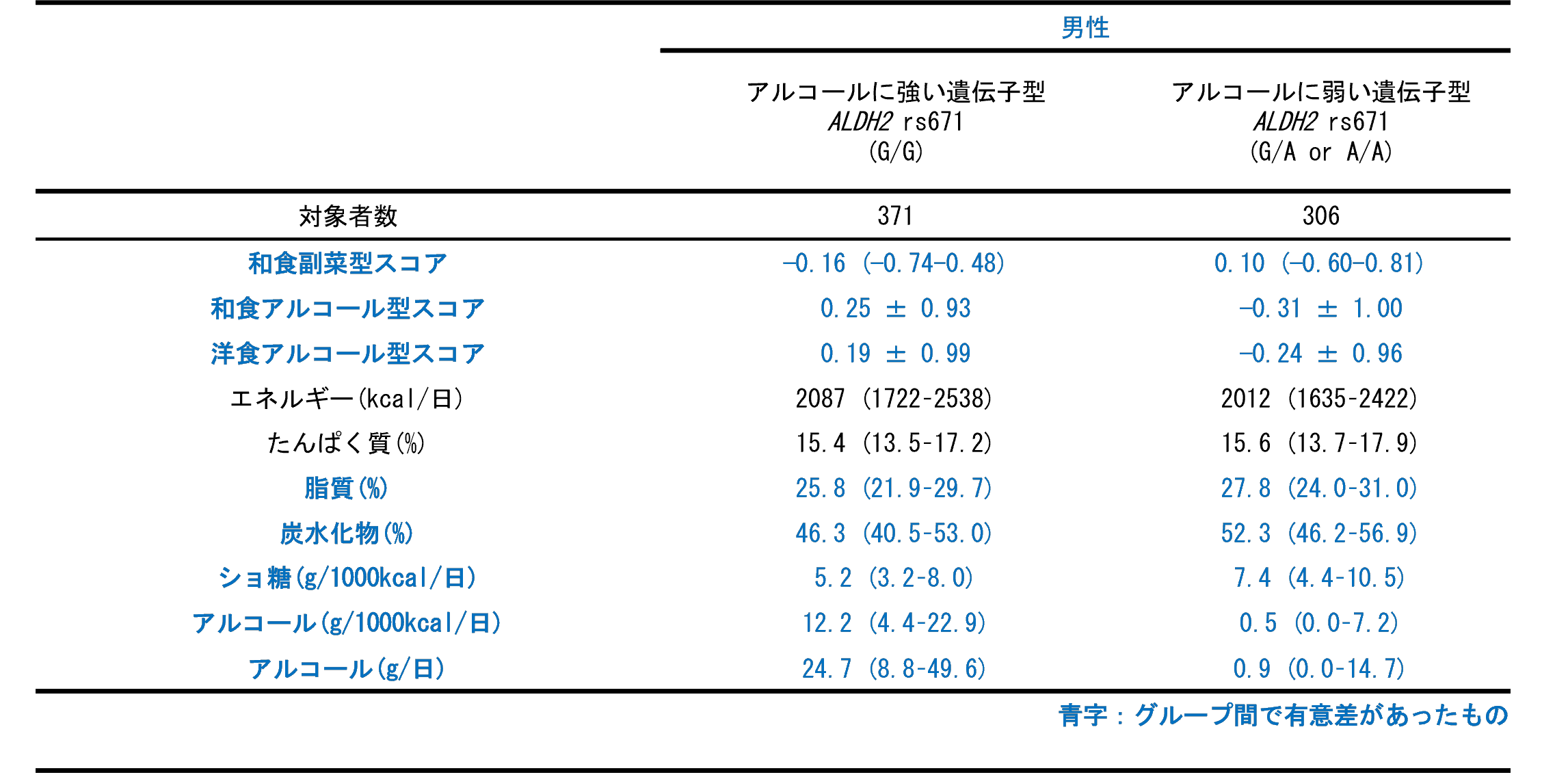 タイトル(日本語訳):ALDH2遺伝子多型およびアルコール摂取と食事パターンの関連:文京ヘルススタディー