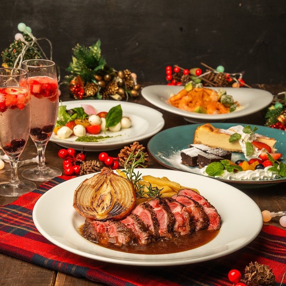 希少部位である「ミスジ」の牛ステーキをメインに、もちもちの食感が特徴の海老とアボカドの生パスタやモッツァレラチーズのカプレーゼなど、クリスマスにぴったりのお料理に加え、ウェルカムドリンクとしてフルーツが浮かぶ「ベリーベリースパークリング」を、デザートにはクリスマス感たっぷりのSWEETS盛り合わせと、全5品の魅力的なプランをご用意しました。