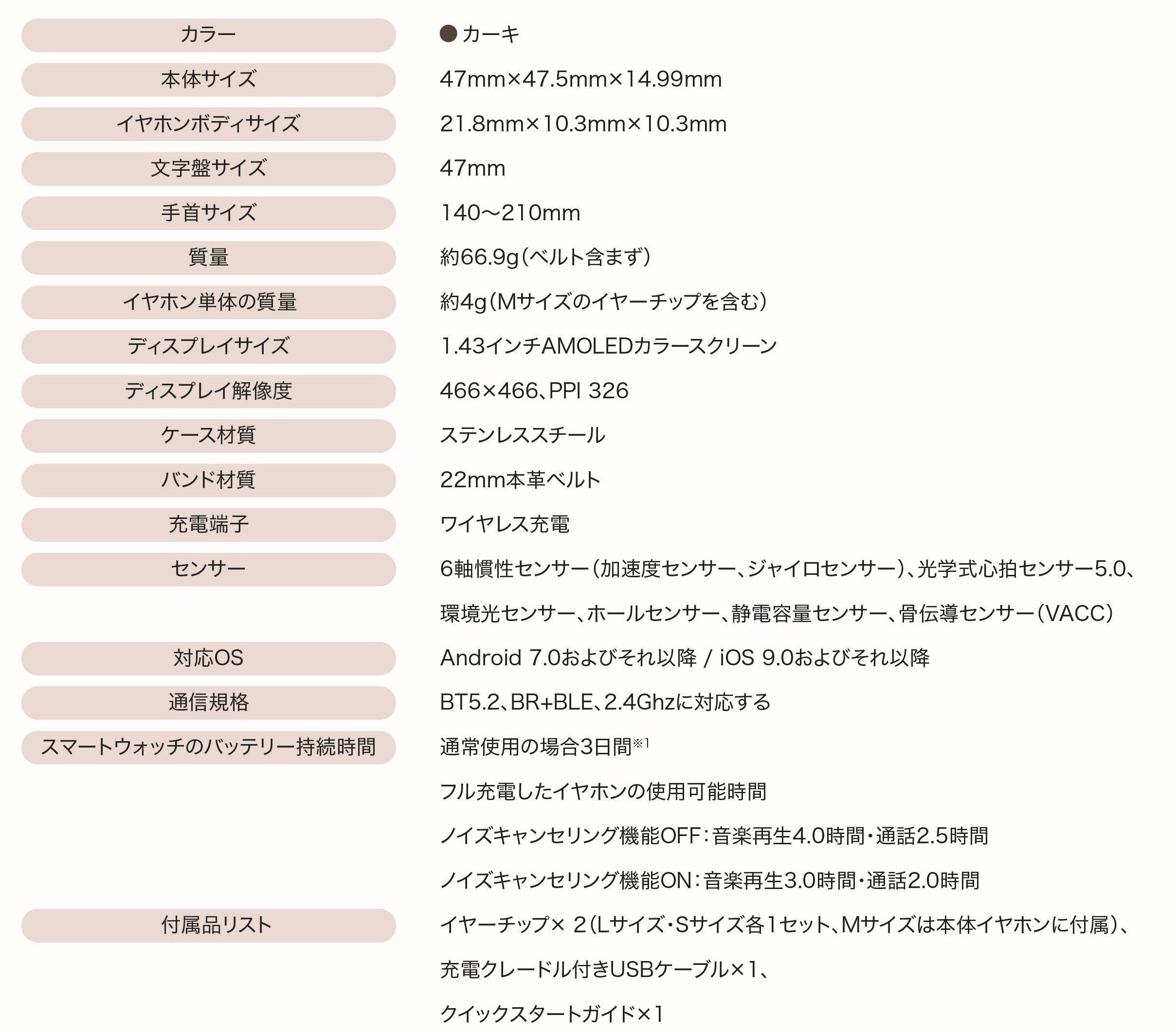 小型化した高性能の完全ワイヤレスイヤホンを、最先端の製造プロセスにより、スマートウォッチの中にすっぽり収納した1台2役のプロダクトです。イヤホンはマグネット吸着式で、ウォッチディスプレイの内部にセットできるようになっているため、取り出しもスムーズで、使いたいときにいつでも簡単に装着できる仕組みです。外出時には、スマートウォッチとイヤホンケースを別々に持たなくても、スマートウォッチだけを装着すれば良いので、いままでにない効率的で便利なユーザーエクスペリエンスです。