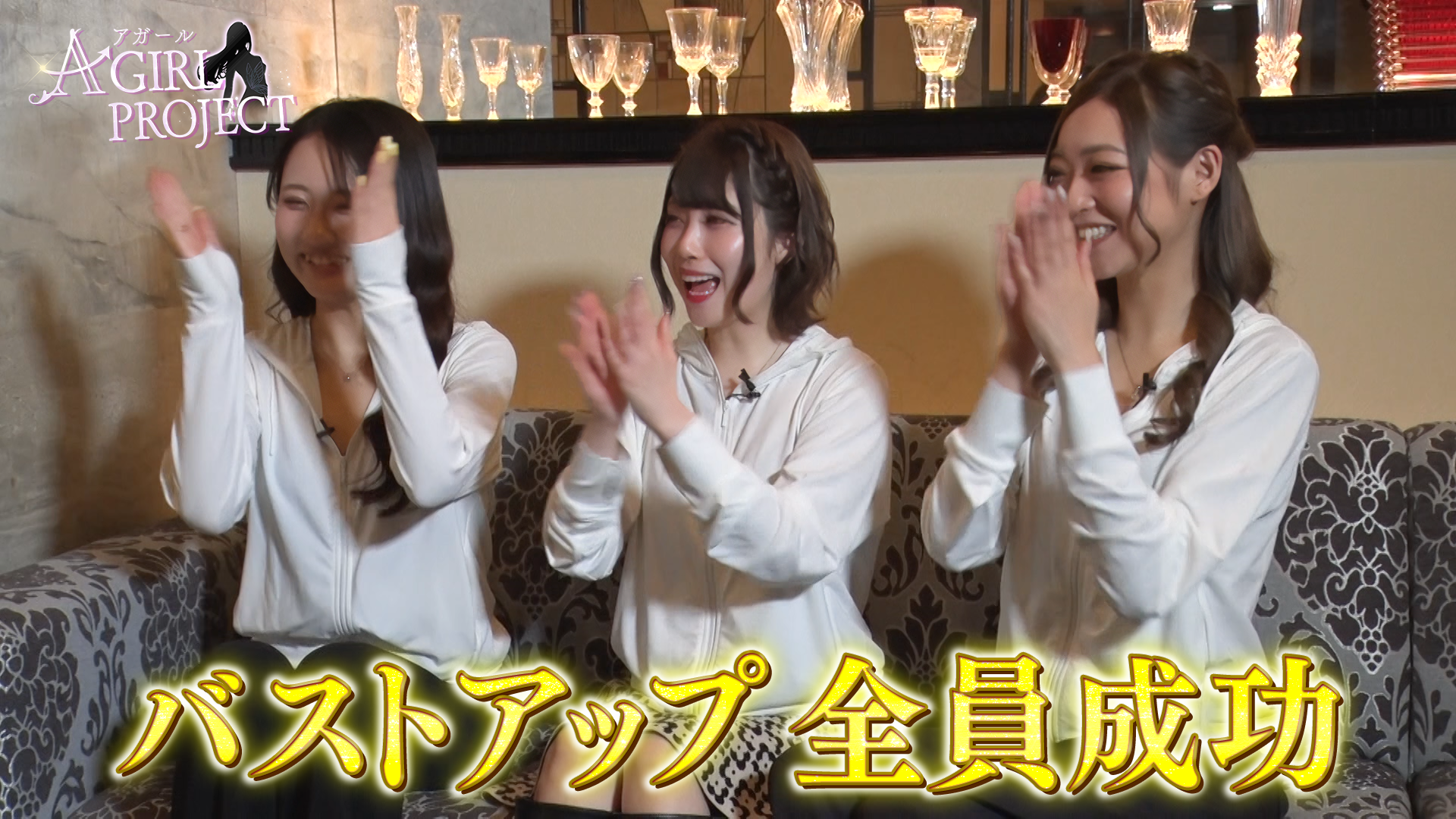 専門家によるバスト測定の結果、見事3名全員が2カップのバストアップに成功。「A GIRL」たちは目に涙を浮かべ喜びを分かち合い、念願のドレス姿でバストアップした胸元を披露しました。