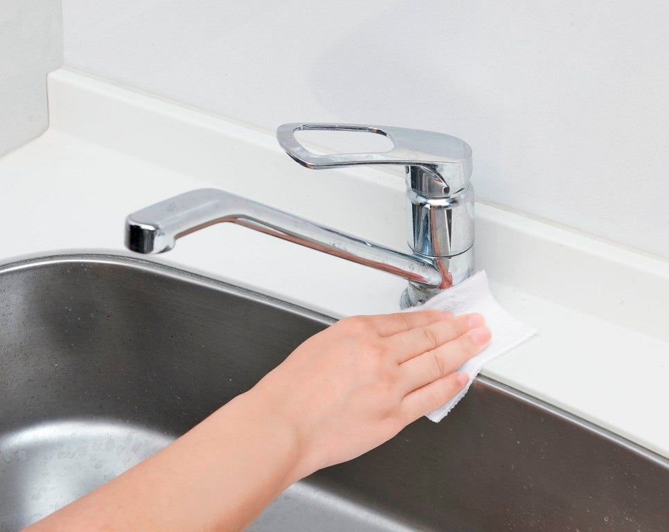 乾いたままでも、水を含ませても使えるのがうれしいポイント。キッチンまわりの油汚れや蛇口の水垢、お風呂のサッシ、レンジフードはもちろん、メガネやスマホ画面、靴磨きなど、気になるところをサッとひと拭き!