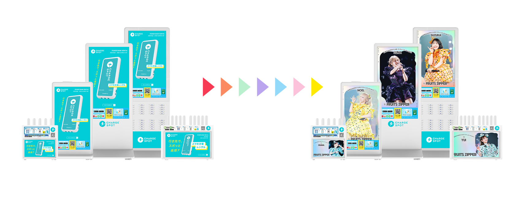 モバイルバッテリーシェアリング『CHARAGESPOT』のデジタルサイネージを活用し、ファンが個人で「応援広告」を街中に出稿できるプラットフォームです。