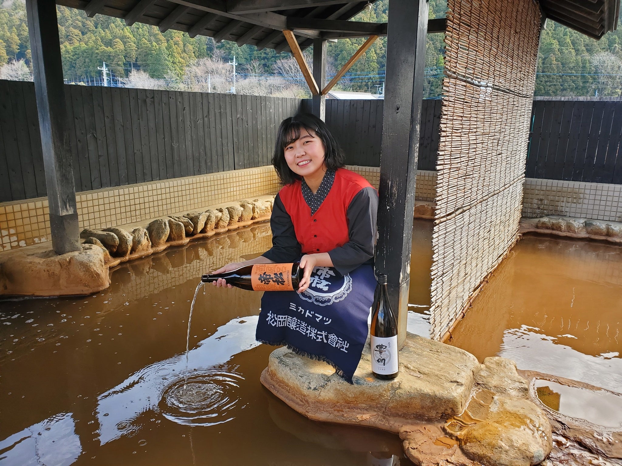 10時30分から21時30分まで1時間おきに男女露天風呂に日本酒「帝松」を投入します。ふんわりと香る日本酒のいい香りをお楽しみください。