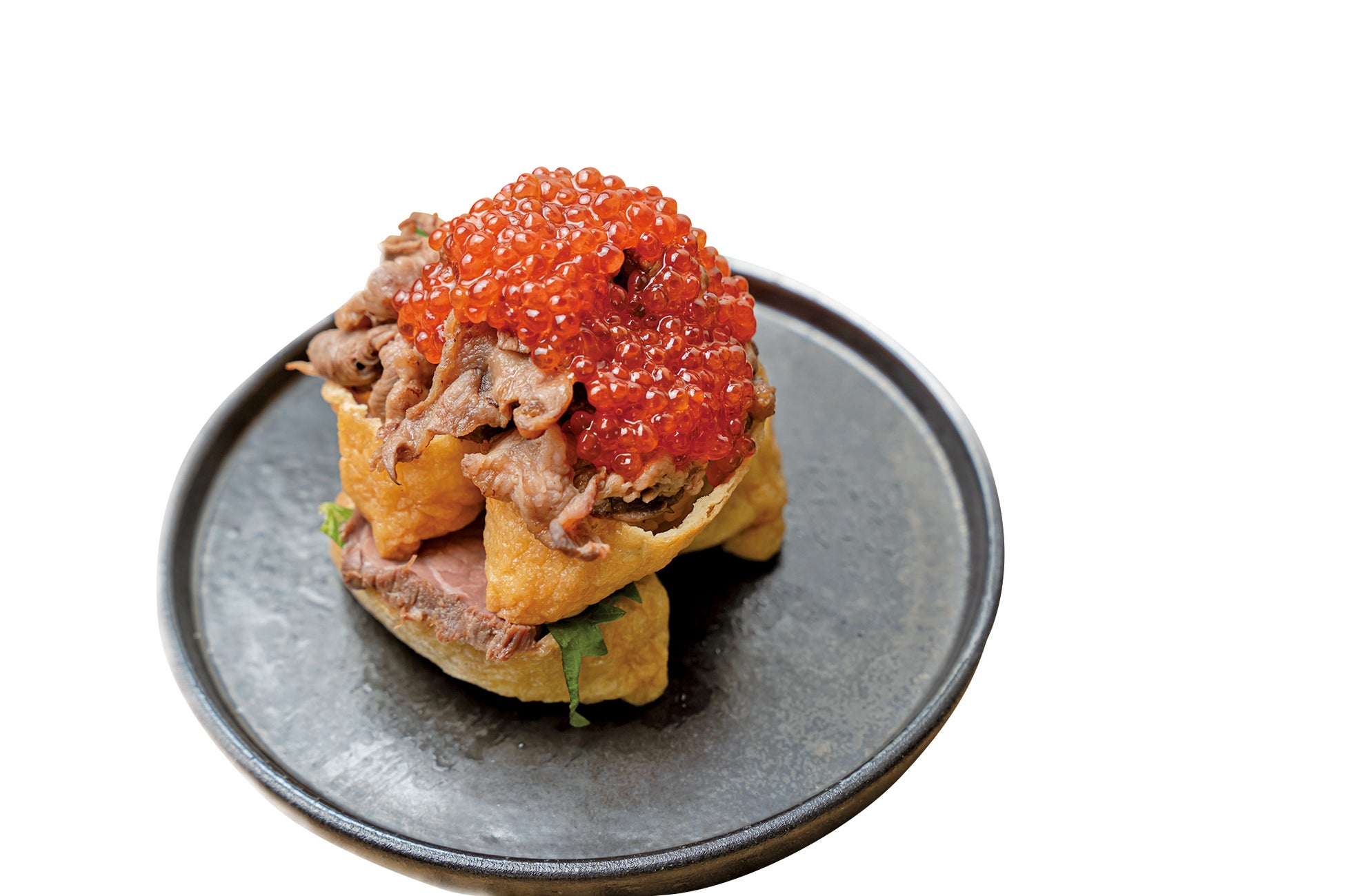 大阪に本店を構え今年テイクアウト店としては関東に初出店したいなり寿司専門店。ローストビーフ、国産牛肉、いくらをダイナミックにのせた豪華ないなりは見た目のインパクトも楽しめます。