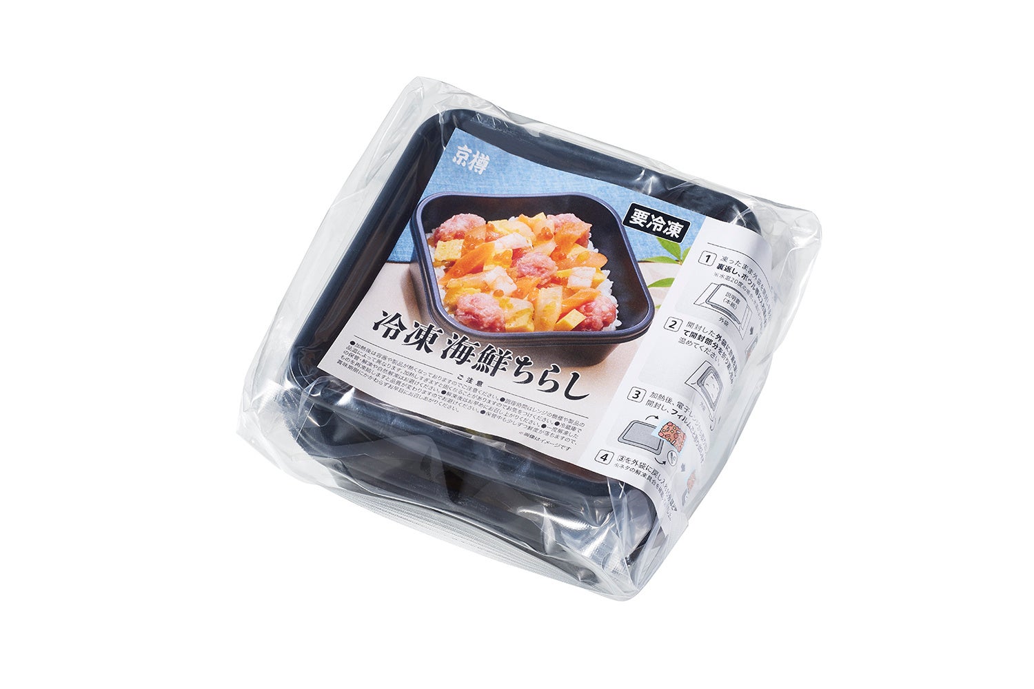 冷凍鮨は、看板商品「茶きん鮨」を一回り小さいサイズでお楽しみいただける「冷凍 姫茶きん鮨(6個)」をはじめ、「冷凍 海鮮ちらし」、「冷凍 五目ちらし」などのちらし鮨、「冷凍 焼鯖鮨(6貫)」、「冷凍 穴子鮨(6貫)」などの押し寿司などを各種ご用意いたしました。「冷凍 姫茶きん鮨(6個)」は、混ぜシャリを薄焼き玉子で包んだお鮨で「京樽」の看板商品です。「冷凍 海鮮ちらし」は、まぐろ、えび、いかなどの海鮮とシャリの間に、茎わかめや山くらげを合わせることで食感と風味が楽しいちらし鮨で、ネタが小さく切りつけてあり、さらにまぐろやいかには特製タレで味がついているので醤油をつけずに美味しくお召し上がりいただけます。さらに、香ばしく焼いた鯖を使用した「冷凍 焼鯖鮨」や、「冷凍 穴子鮨」など、電子レンジで温めることでふんわり優しい味わいをお楽しみいただける押し寿司もご用意しています。