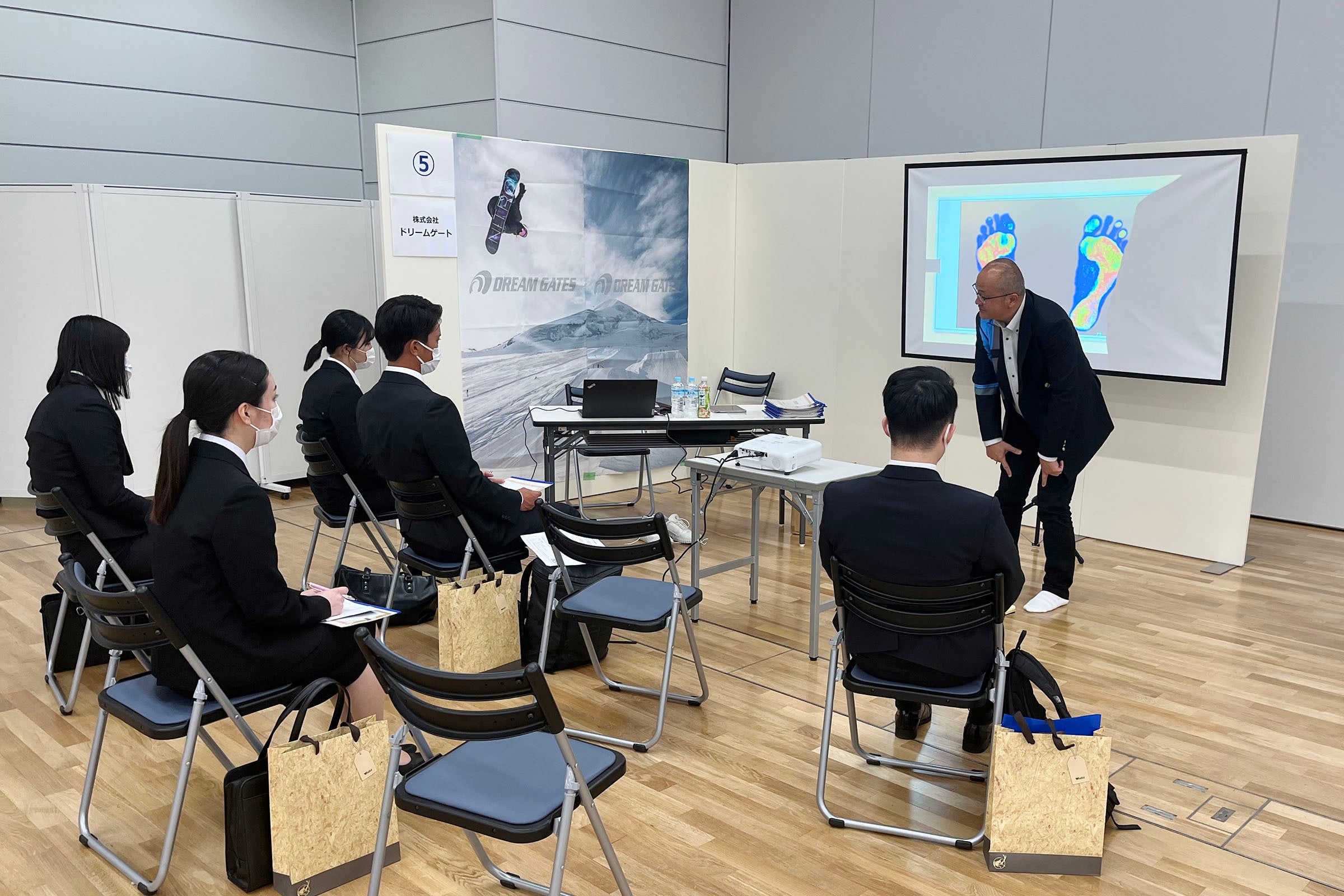 1962年創業のウィンタースポーツの専門店、株式会社ドリームゲートは、東京に9店舗、新潟に1店舗を運営。多くのアスリートから支持を得ている自社開発のインソールを例に会社を紹介。ウィンタースポーツの魅力を発信し続け、お客様の健康生活のサポートを共に行ってほしいと訴えた。