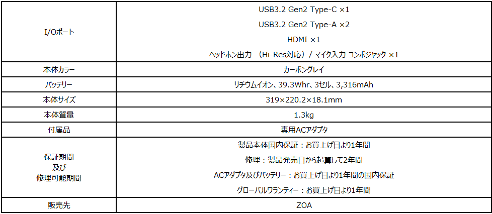 高速処理性能とテレワーク向け機能を備えて税込9万円以下 Ryzen™ 5 5500U搭載ビジネスノートPC ZOA限定モデル「Modern-14-B5M-3105JP」発売