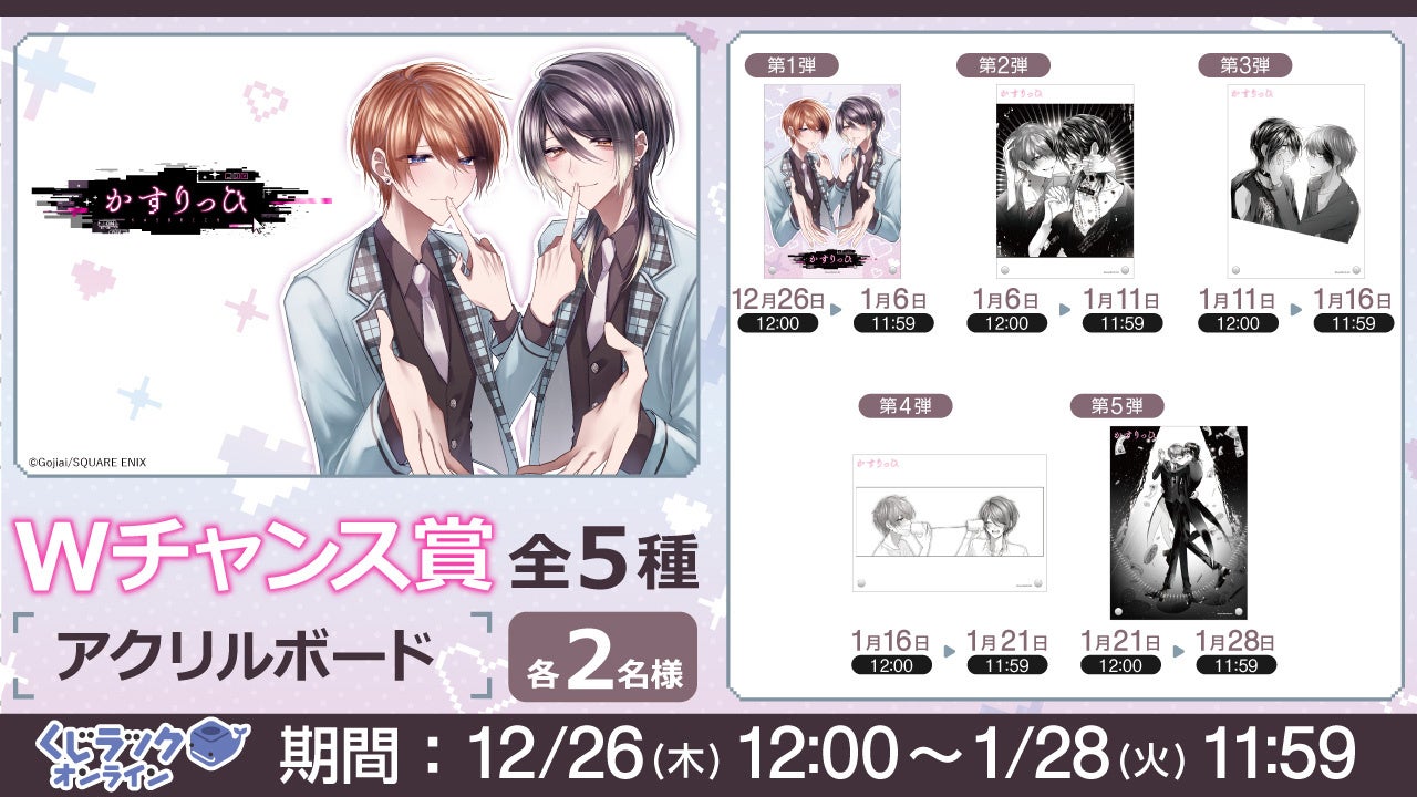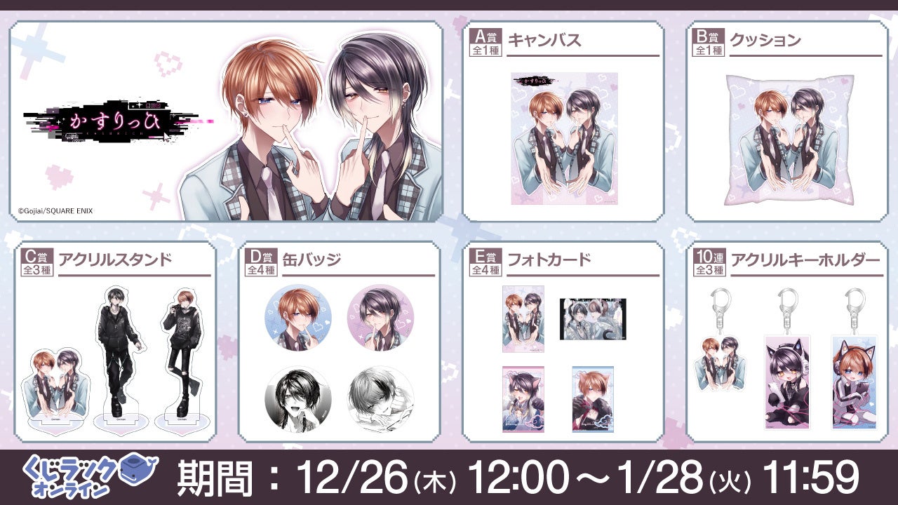 「かすりっひ」(ガンガンコミックスpixiv連載)が「くじラックオンライン」に登場!新規描き下ろしなどを使用したオリジナルグッズがハズレなしでゲットできる!2024年12月26日(木)より発売開始!
