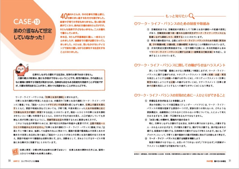- 実際に企業で起きがちな出来事を基にした事例と徹底した従業員目線の解説で、自身の職場環境に落とし込み、コンプライアンスを“自分ごと”として読み進めることができる。