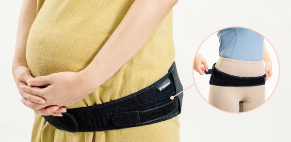 妊娠中はお腹が大きくなり、視野が狭まったり身体が動かしにくくなります。そこで、手の届きやすい位置に補助ベルトを配置し、手元が見えなくてもしっかり締められる構造にしました。