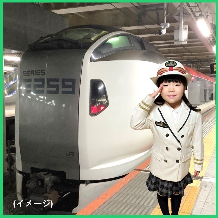 「E259系 成田エクスプレス」の写真を背景に記念撮影ができます。