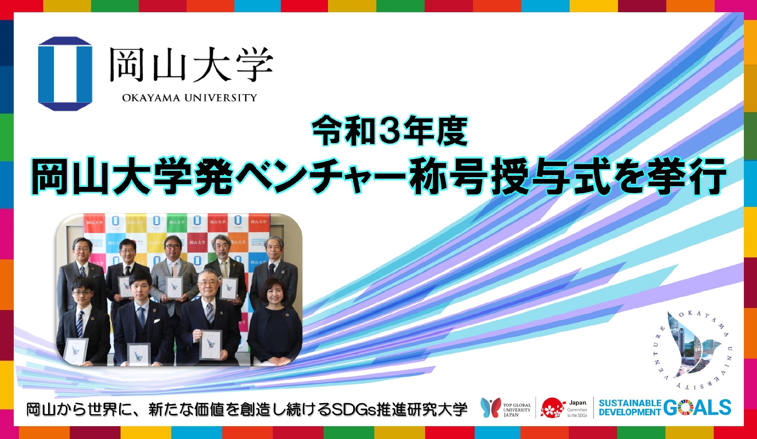 国立大学法人岡山大学(本部:岡山市北区、学長:槇野博史)は2022年2月2日、「令和3年度岡山大学発ベンチャー称号授与式」を挙行しました。