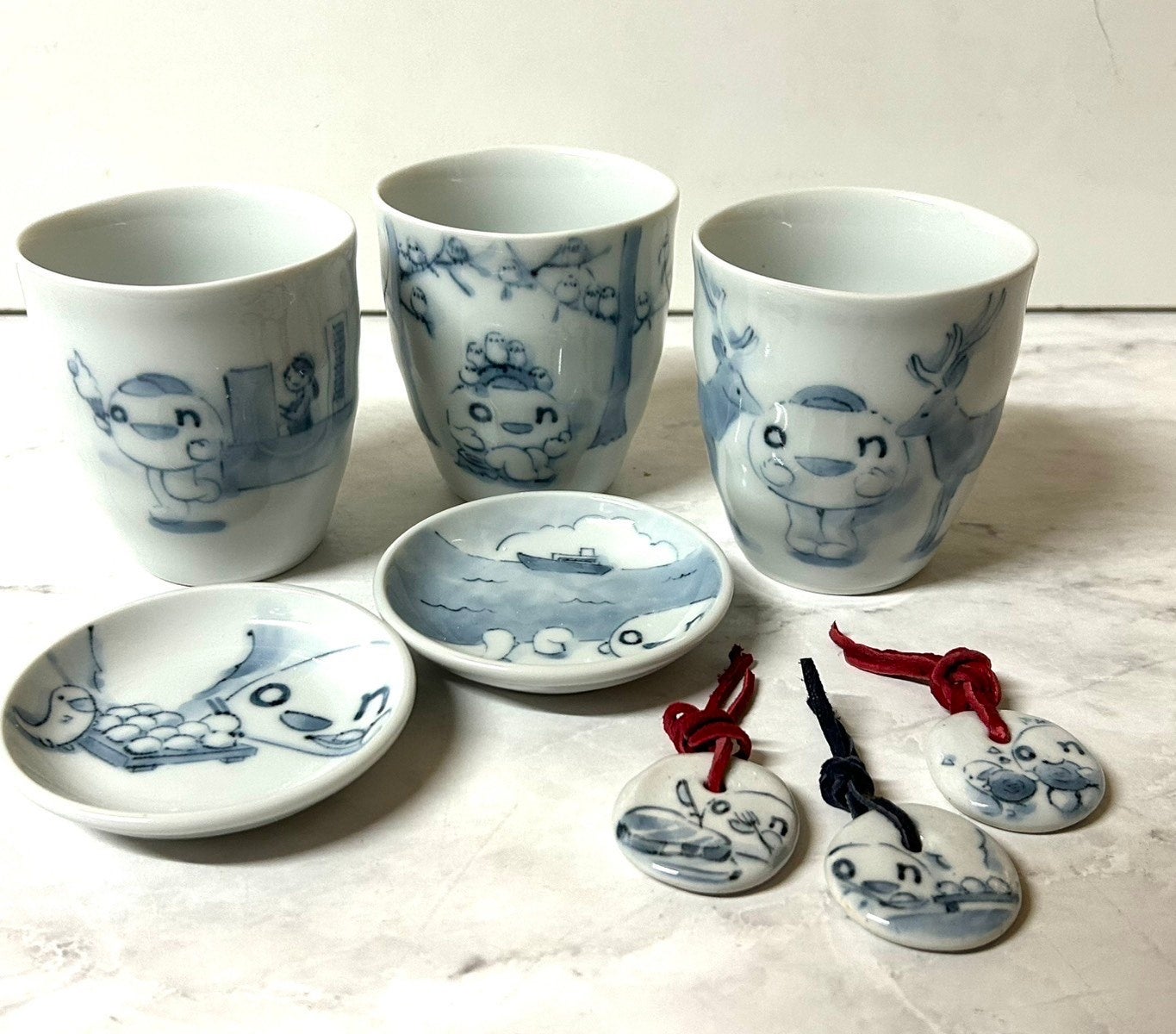 onちゃんとのコラボデザインが大人気ですが、このほど着ぐるみバージョンのonちゃんが初めて描かれることに。神戸や北海道の風景にonちゃんの豊かな表情、かわいいしぐさが皿やカップなどに描かれます。