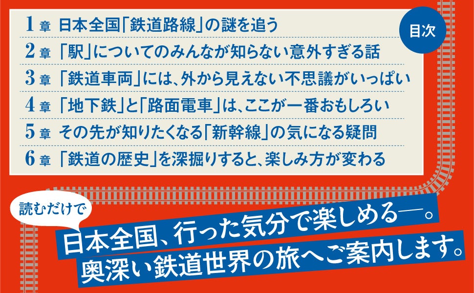 本書は、路線図、車両、鉄道会社、時刻表、駅から、鉄道の知られざる歴史まで、鉄道ファンもうならせる意外な秘密にとことん迫る本です。