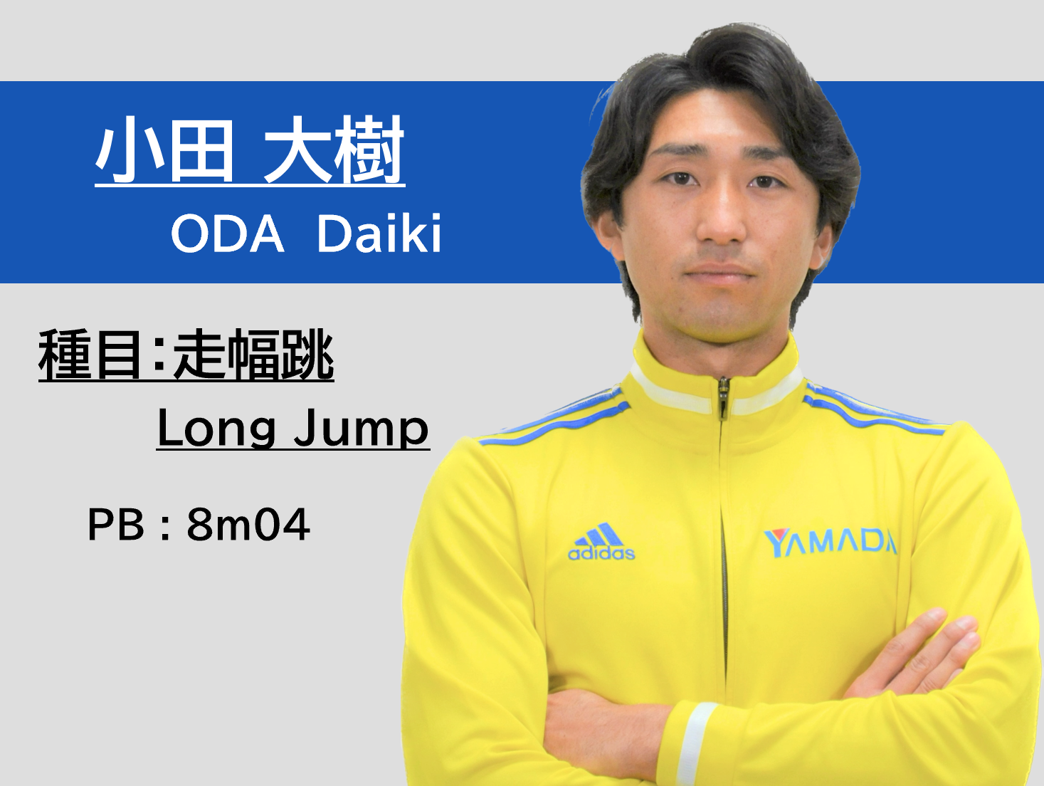 2023 年10 月13 日(金)~ 10 月17 日(火)に鹿児島県で開催される「特別国民体育大会」において、ヤマダホールディングス陸上競技部所属の小田大樹選手(走幅跳)が群馬県代表として出場いたします。前回大会では、成年男子走幅跳において小田選手が見事優勝、今大会は連覇への期待がかかります。